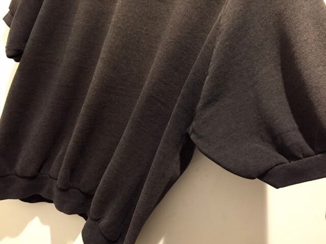 カラーはブラックがフェードして良い感じのスミクロカラーです。80年代のアメリカ製で半袖スウェットではなかなか見つからない大きめサイズです。KING SIZEというタグもアメリカらしくて良い感じです。ラグランスリーブで着用しやすく中にサーマルなど合わせても良いですね。