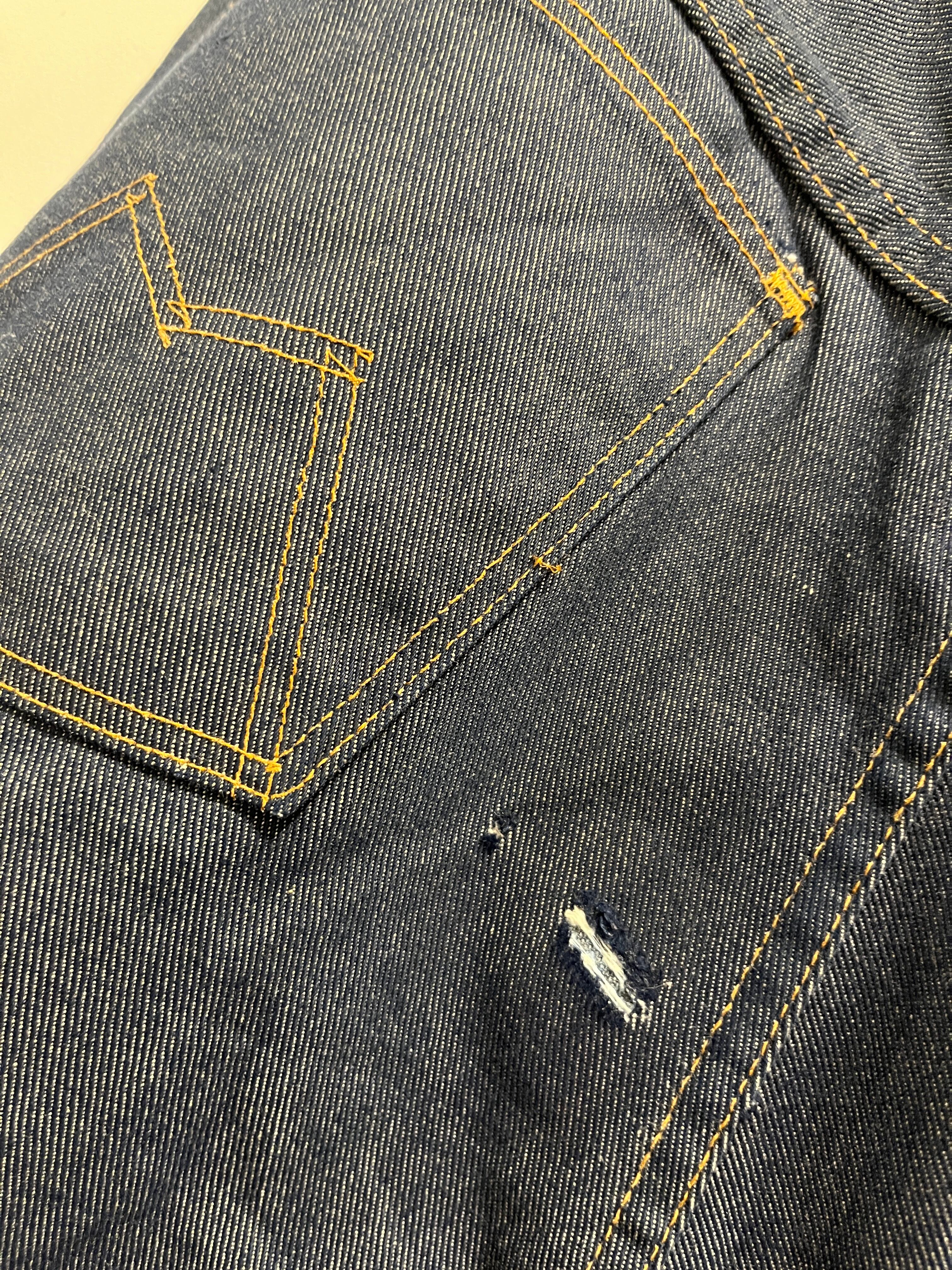60年代〜70年代アメリカ製マーベリックのブーツカットデニムです。ラングラーの姉妹ブランドであるマーベリック。リーバイスやLee、ラングラーに比べてもあまり出てこない印象ですね。濃い色のデニムに、ジッパーはSCOVILL、ピスネームはRのみで60年代後半〜70年代前半の物となります。ループが右フロントが多かったり少し凝ったデザインとなっています。裾はあげられていますがしっかりブーツカットは残っていてリーバイス517に近いシルエットとなります。大きいサイズ感で探していた方にはオススメな1本となります。