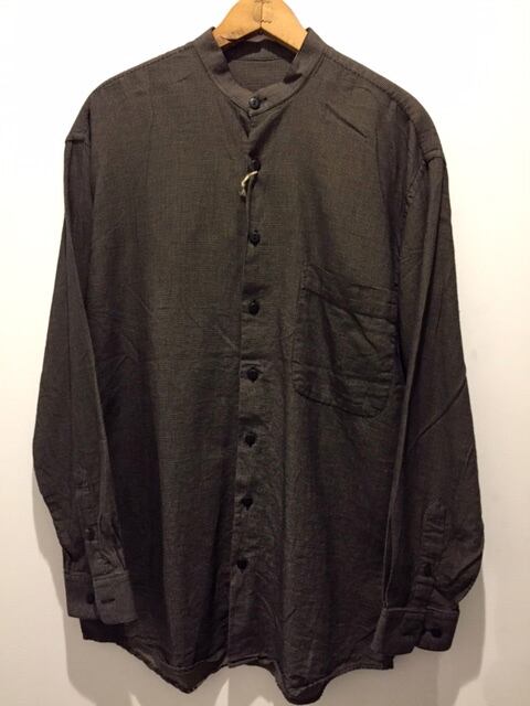 カラーはブラックベースです。さりげないですが近くで見て頂くと千鳥格子柄になっています。バンドカラーで胸の大きめのポケットもアクセントになっていてオシャレな1着です。ポルトガル製と嬉しいヨーロッパメイドというのもポイントですね。Sサイズ表記ですが実寸は少し大きめサイズです。