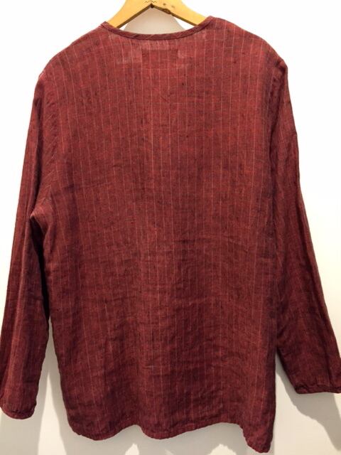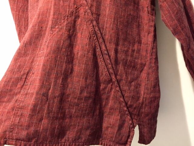 リネン素材をメインに使用する事が多いFLAX。こちらはデザインがとてもオシャレなカットソーです。片側だけに付くポケットや格子状の柄と色味も最高な1着です。裾にはスリットがはいり、レイヤードもしやすく中にモックネックのTシャツなど合わせても良いですね。
