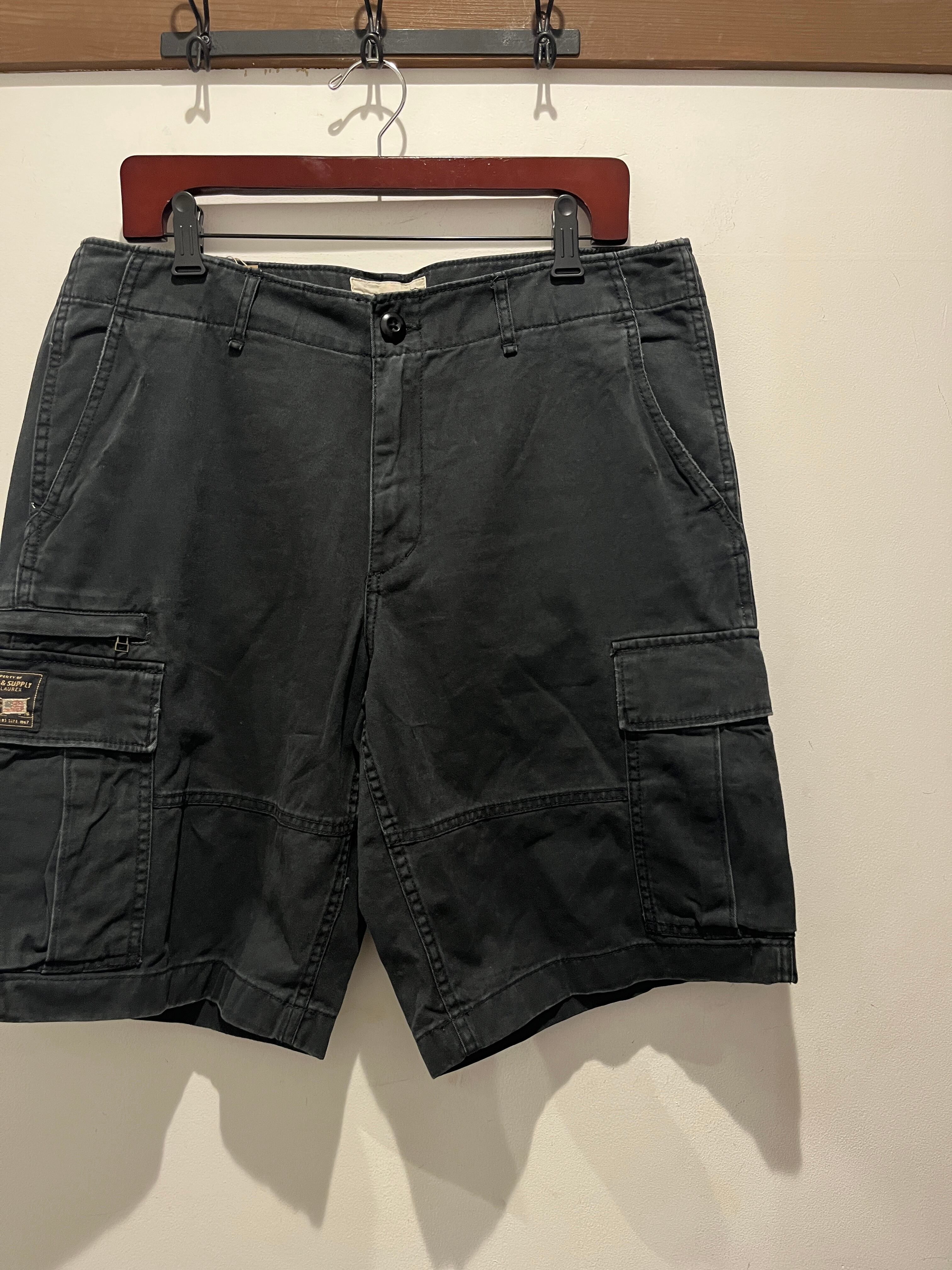 ラルフローレン デニム&サプライのショーツです。2017年に終了したラルフローレンのラインDENIM & SUPPLY。今となっては買えなくなってしまったラインですね。こちらはオリジナルのショーツでフェードしたブラックカラーに擦れなどの細かいダメージ加工と良い雰囲気に仕上がっている1本です。片側はジップポケット付きと左右非対称のポケットもかっこいいですね。生地もしっかりしていてガンガン履いていただけるショーツでオススメです。