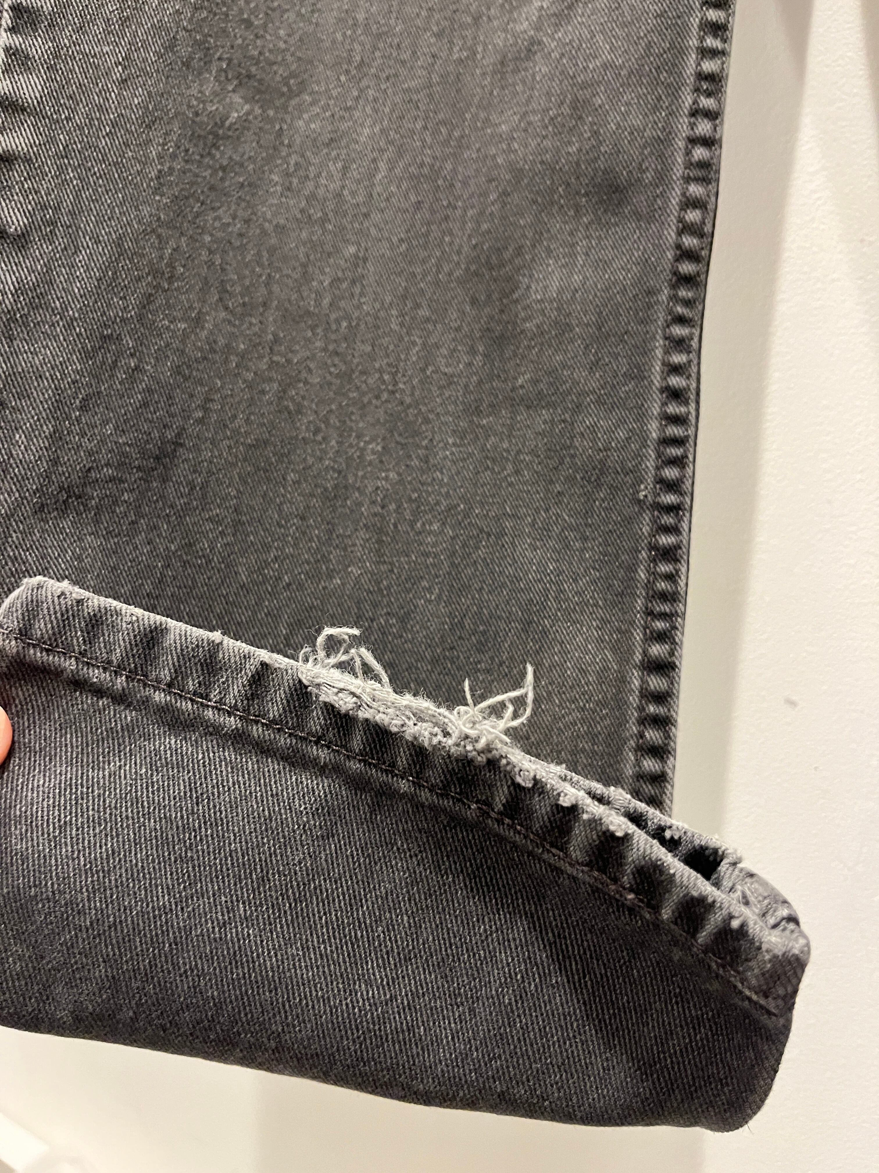 2002年製リーバイス550のブラックデニムパンツです。こちらはアメリカ製ではございませんが年代としてはアメリカ製もある年代なので作りなどは一緒で変わりませんね。先染めでは無く後染めの方のブラックデニムでフェードしたスミクロカラーと良い感じの擦れがあり、綺麗なブラックデニムよりビンテージな雰囲気もあり個人的には好みです。サイズが実寸でウエスト32インチのレングス30インチのゴールデンサイズで裾のあたりもアタリがしっかり出ていてサイズの合う方には非常にオススメな1本です。