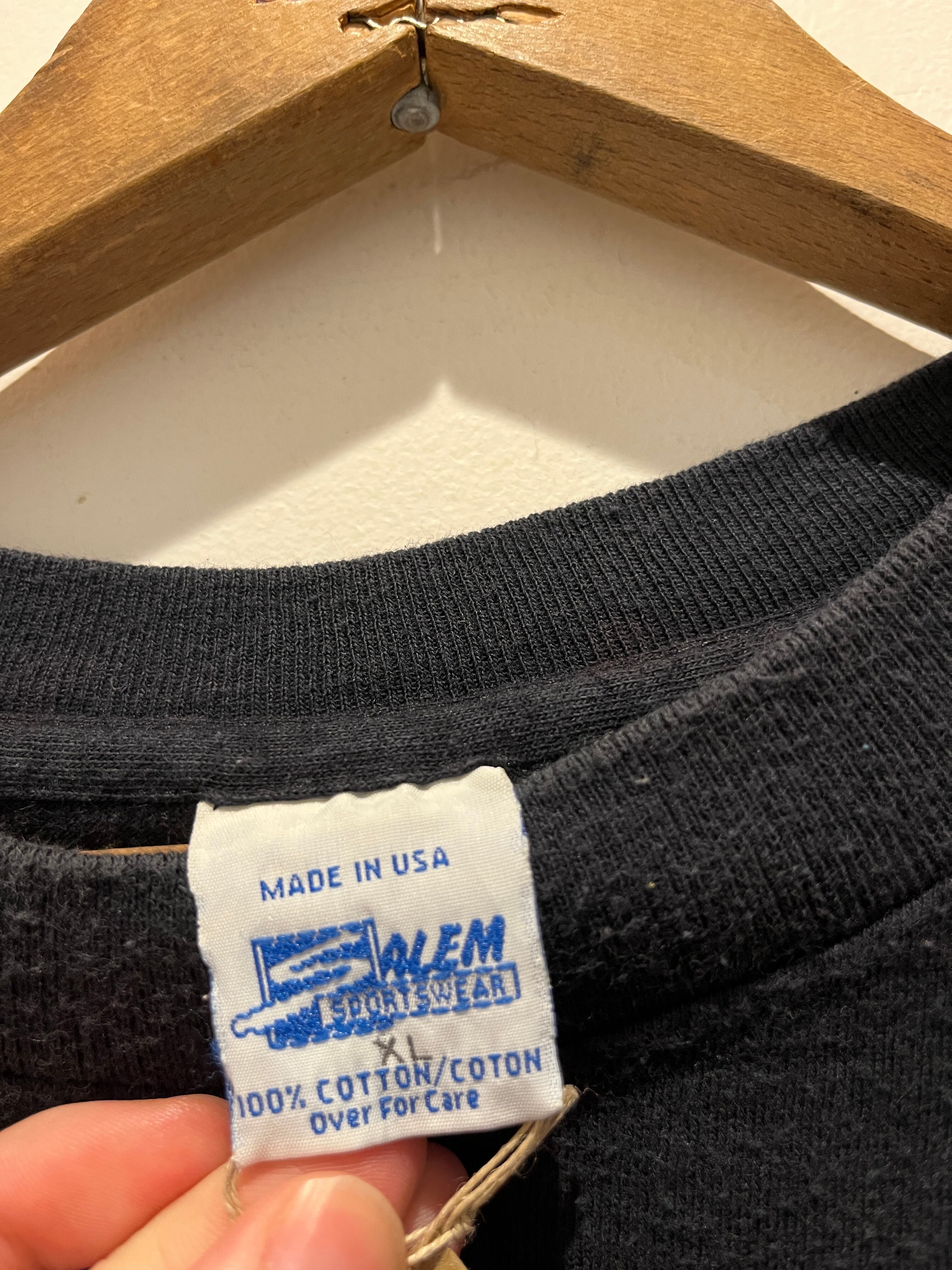 90年代アメリカ製のNBAワールドチャンピオンTシャツです。マイケル・ジョーダン率いるシカゴ・ブルズがNBAファイナルを連覇した時のデザインTシャツとなります。チャンピオンリングのデザインがストリート感もあり、とてもかっこいいですね。ブラックボディに袖、裾ともにシングルステッチ仕様でコピーライトも入ります。