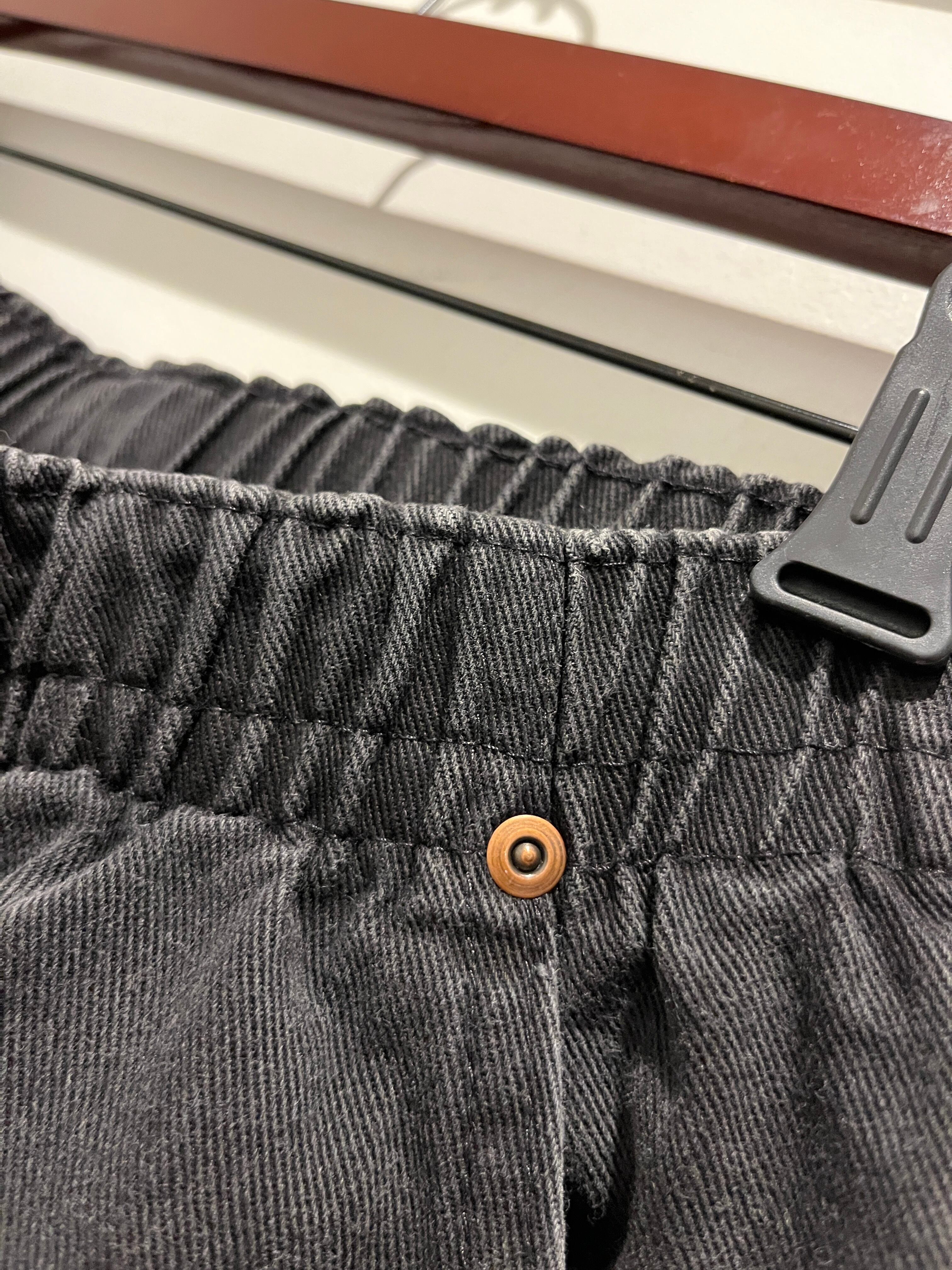 90年代アメリカ製のイージーブラックデニムパンツです。リーバイス550の様に太ももがゆったりして裾にいくにつれてテーパードしていて形が良く履きやすい1本です。ブラックデニムでカッパーのリベットも良い感じですね。ウエストの紐が欠損していますがゴムの伸びが無く気にならない感じです。しっかりアメリカ製で女性の方か細身の男性にオススメなブラックデニムです。