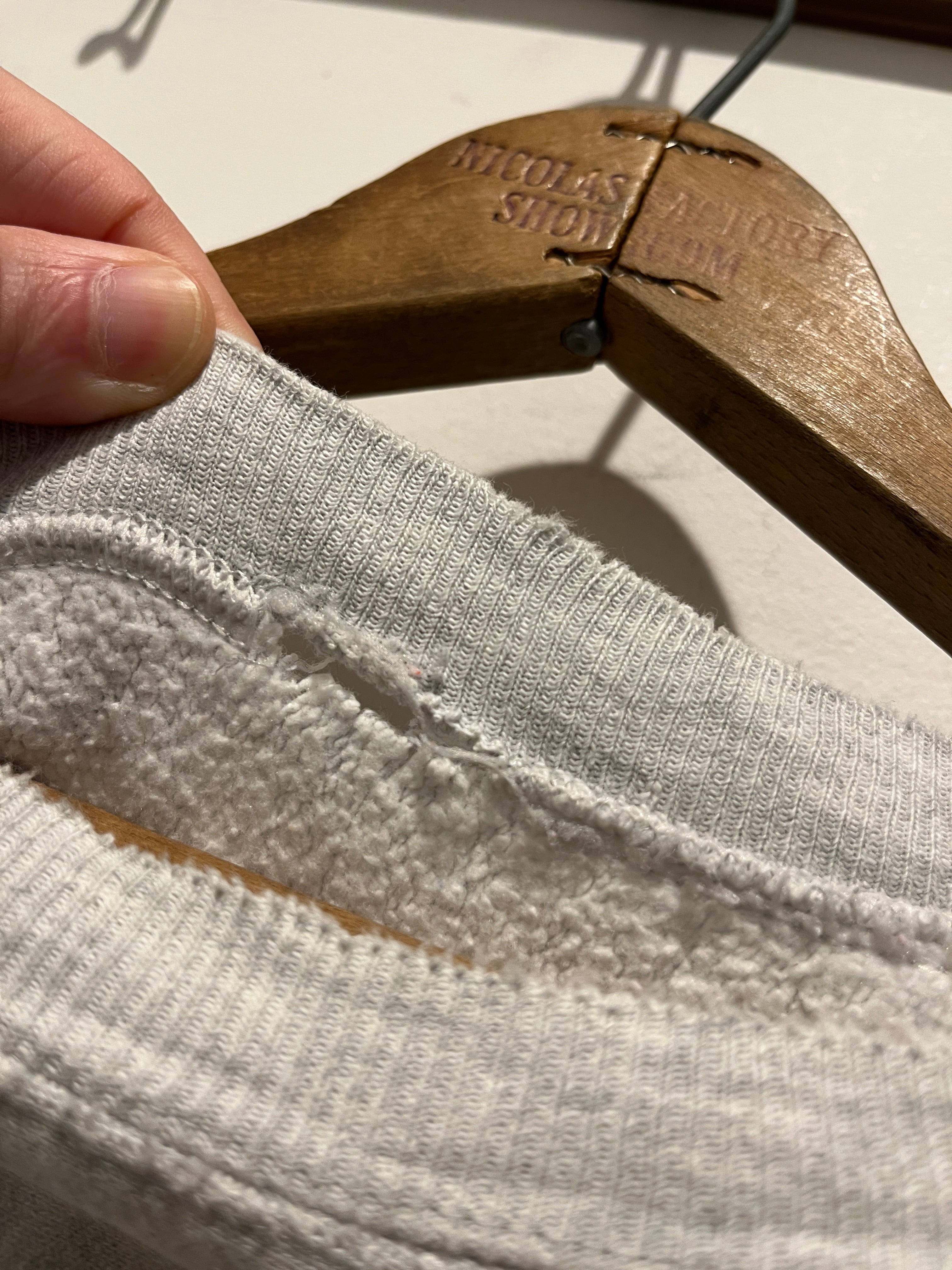 画像のようにタグ欠損、所々に擦れ、小穴がございます。大きなダメージは無く着用には問題無いコンディションです。