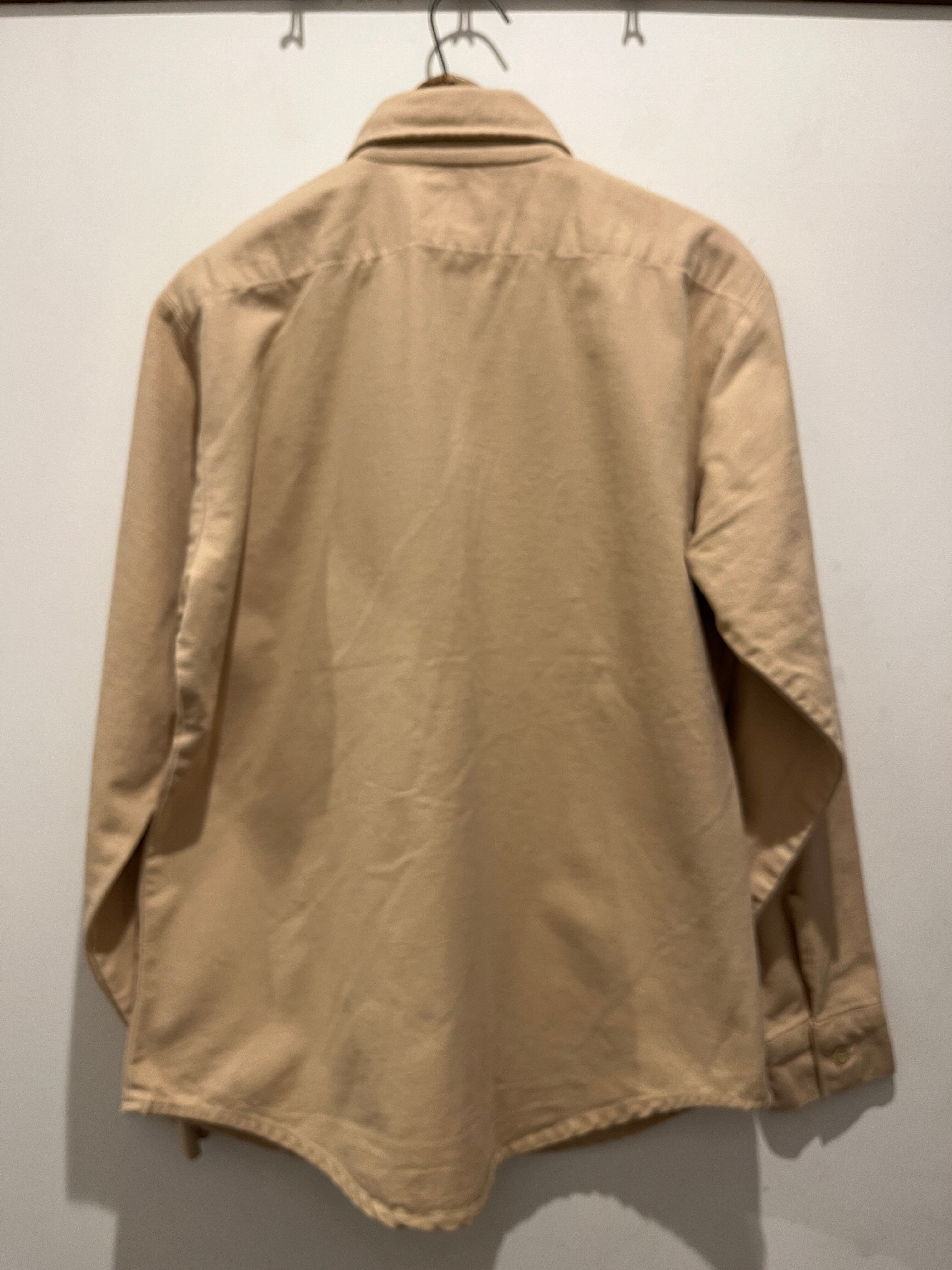 70年代〜80年代アメリカ製ファイブブラザーのネルシャツです。ベージュの無地ネルでボタンも同色のベージュカラーが良いですね。フラップ付きのポケットに魚の刺繍がアクセントになっています。100%コットンのアメリカ製ネルシャツは年々出てこなくなっているので探していた方にはオススメな1点です。
