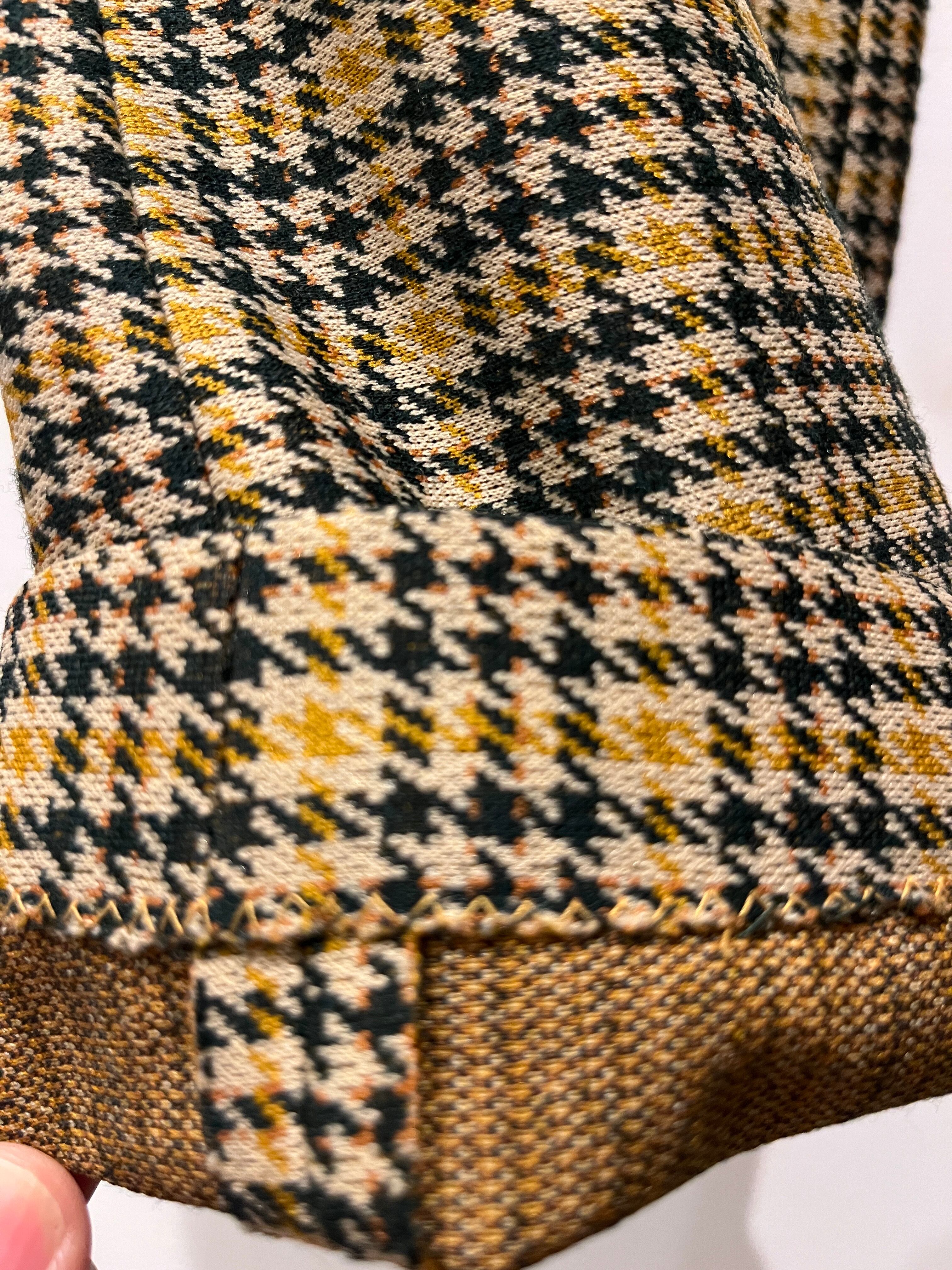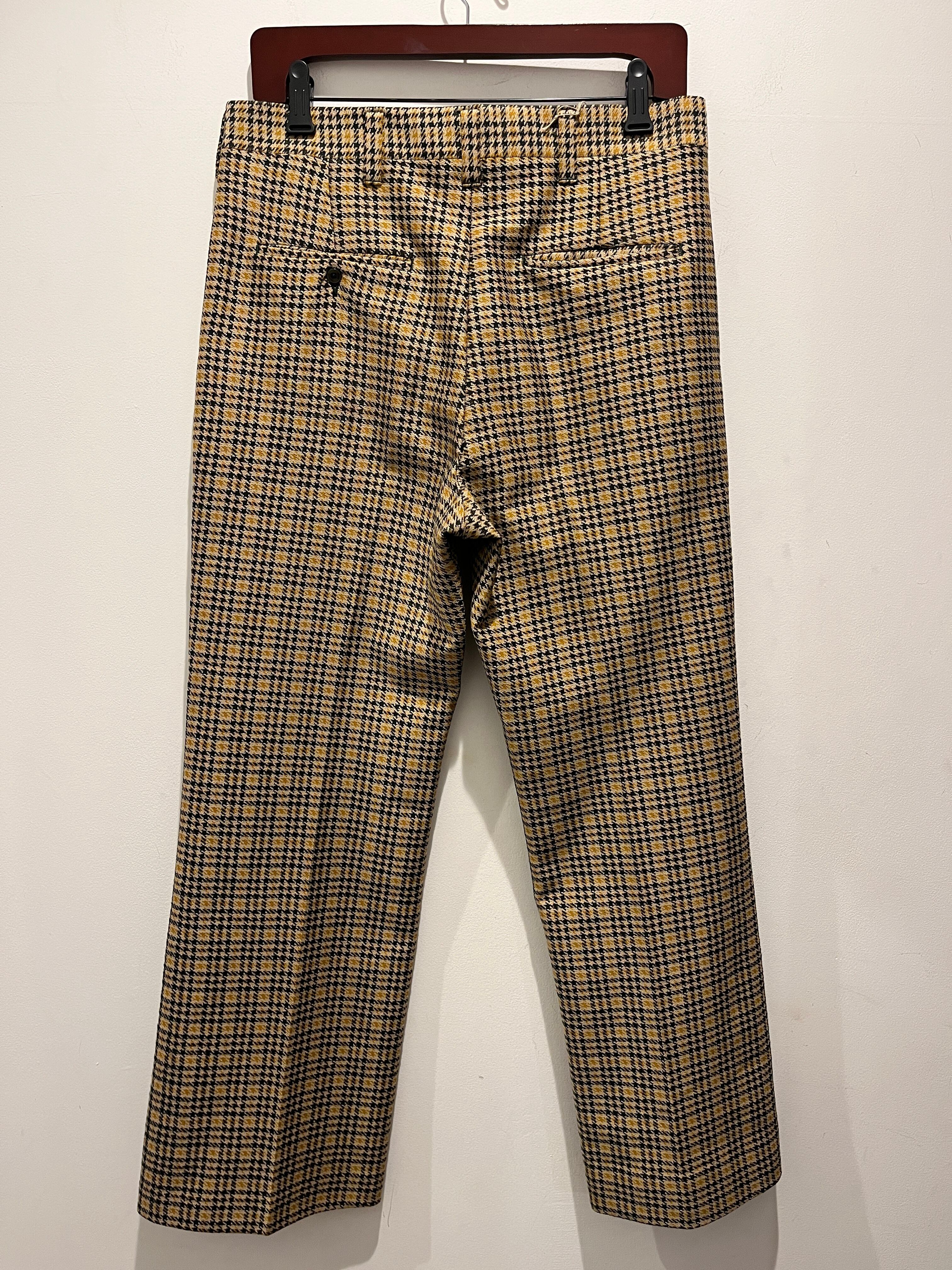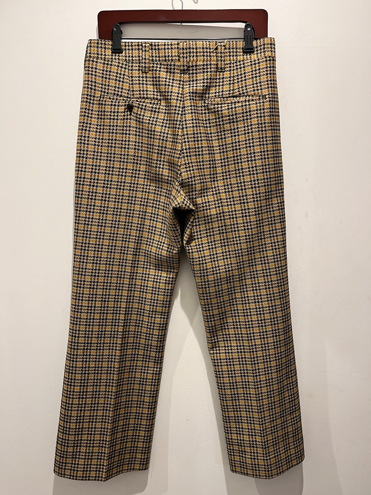 70年代アメリカ製ハガーのブーツカットスラックスです。千鳥格子でチェック柄パンツのような雰囲気がとても良い1本です。TALONジッパーでアメリカ製というのも嬉しいポイントですね。スタプレやラングラーと同じくブーツカット仕様で裾もオリジナルでサイズ感も良くオススメです。