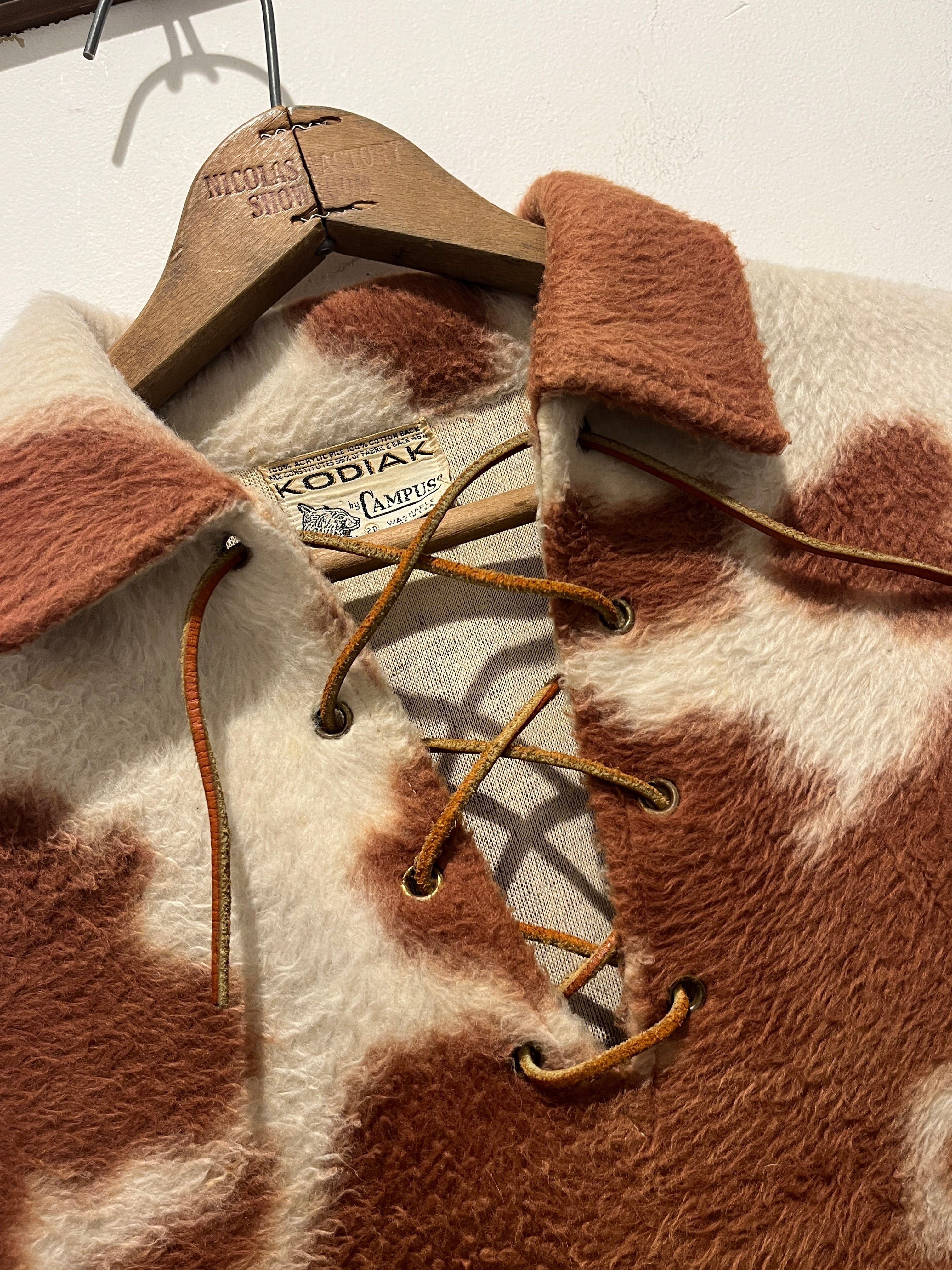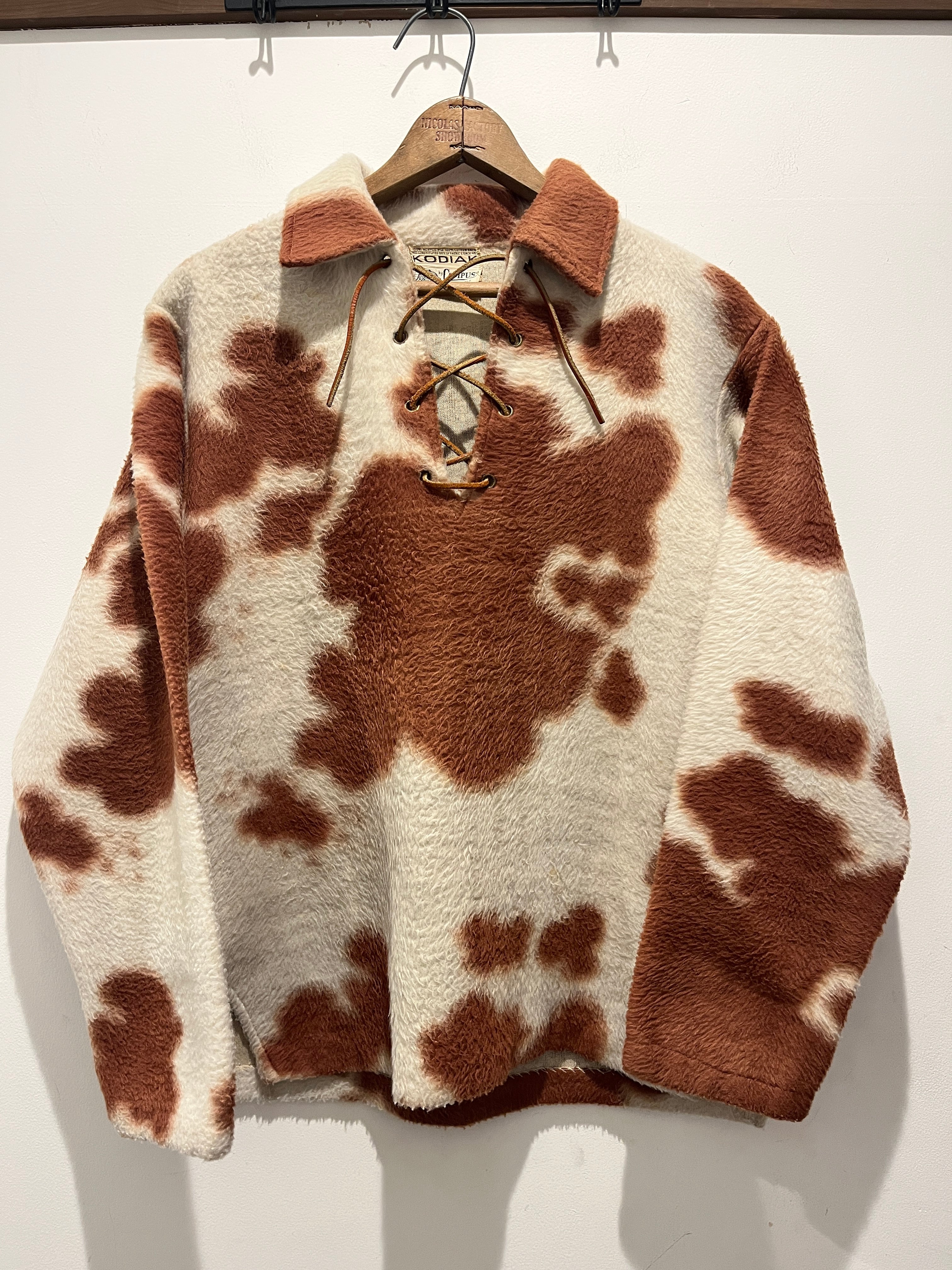 60年代ヴィンテージコディアックのプルオーバーシャツです。コディアックのヴィンテージと言えばこのアニマルシリーズを思い浮かべる方も多いのでは無いでしょう?こちらはホルスタイン柄で革紐も当時物でコンディションの良い1着となります。マイフリーダムにも掲載されるオンブックで今後はもっと見つかりにくくなっていきそうですね。ボーイズ20とメンズのSサイズ位の大きさなので小柄な男性か女性のお客様にオススメです。