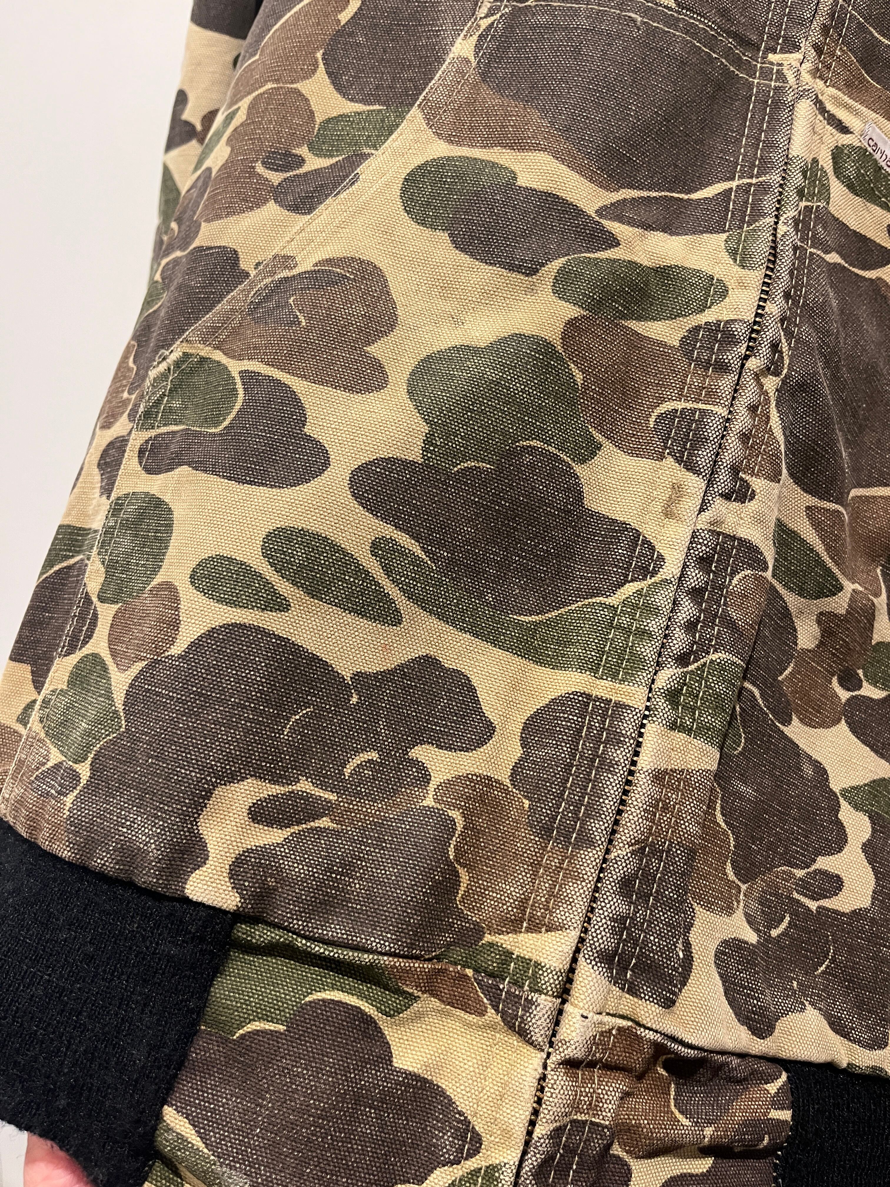 80年代〜90年代アメリカ製カーハートのアクティブジャケットです。カーハートの名作アクティブジャケット。こちらは珍しいダックカモパターンとなります。トリプルステッチなどワークらしくしっかりした作りも魅力的ですね。アメリカ製カーハートも希少になりつつあるアイテムで老若男女問わずオススメです。