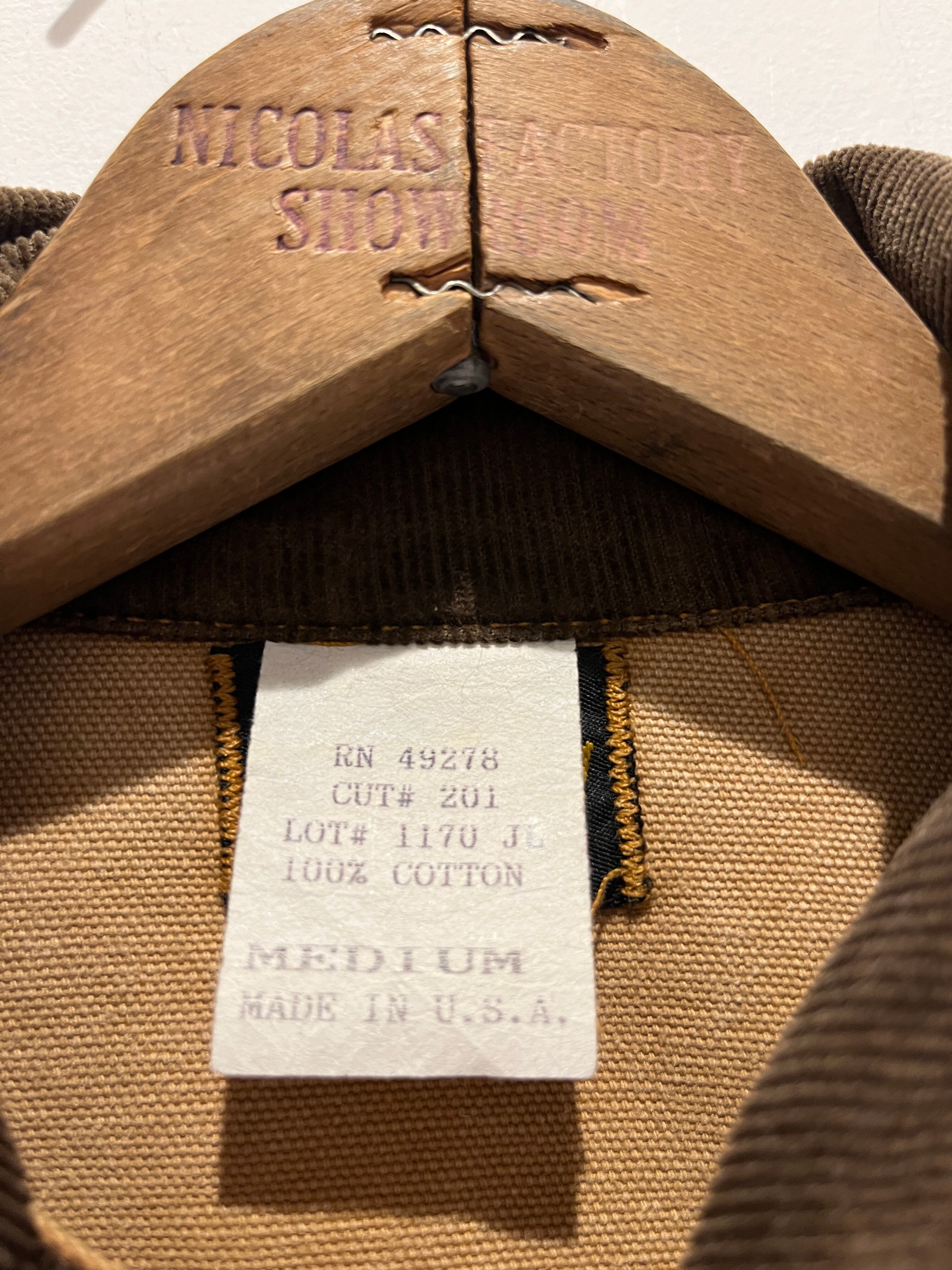 80年代〜90年代アメリカ製スタンレイのダックカバーオールです。ブラウンダックで襟がコーデュロイ仕様のボタンはスナップボタンとなります。剥き出しリベットで角ばったポケットにアームポケットはカーハートのダブルニーのような形のポケットが使われているのが面白いですね。ブランケットなどもなく、大きすぎないサイズ感で雰囲気も良くオススメな1点です。