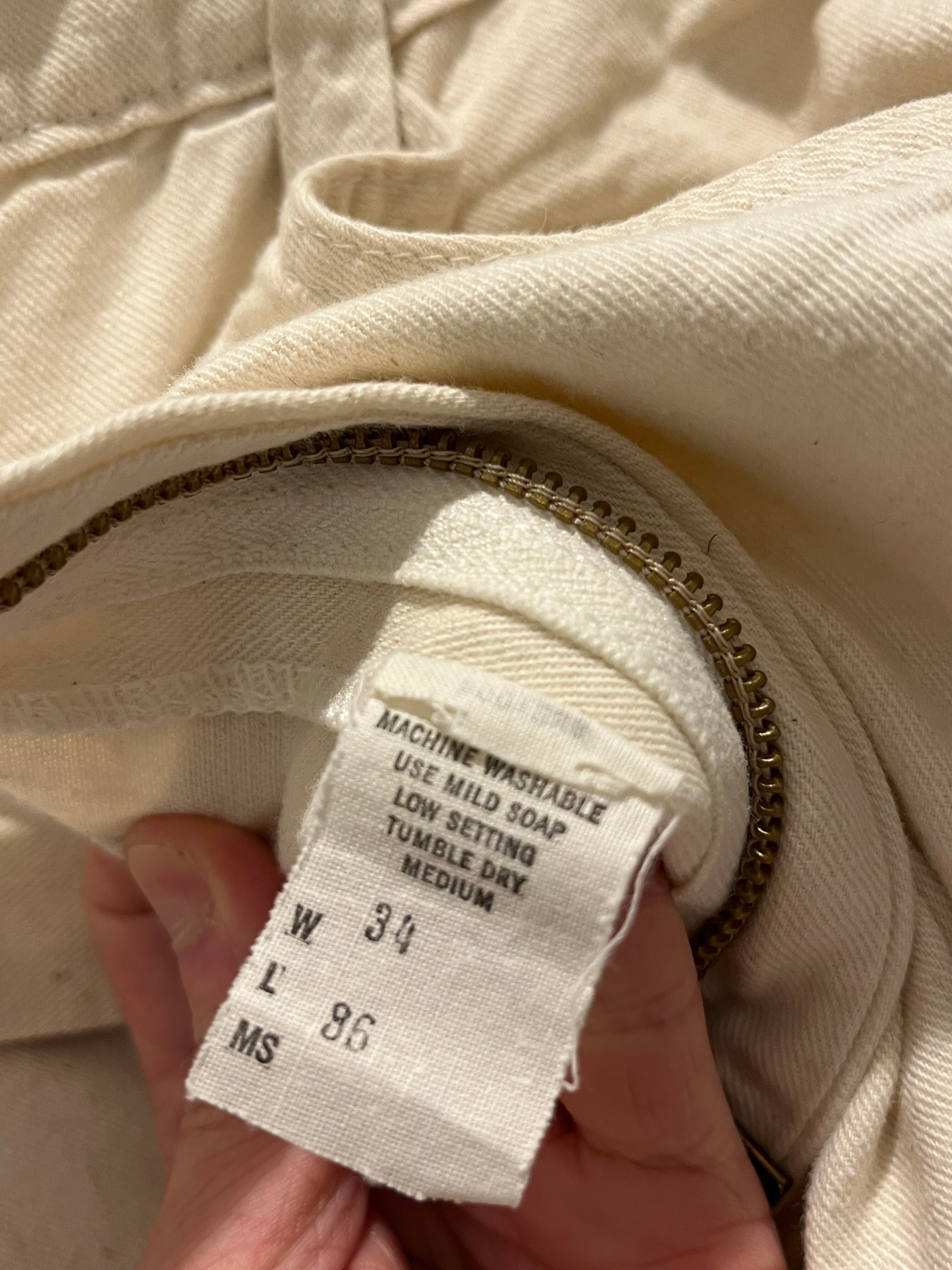 80年代アメリカ製DEE CEEのペインターパンツです。生成りボディに厚すぎない生地感でとても使えるペインターパンツです。生成りのペインターパンツとしてはコンディションも良く汚れなども少ない個体となります。レングスが少し長めなのでロールアップして捲ったり好みな長さに裾上げしちゃっても良いですね。春、夏には特に大活躍な1本でオススメです。