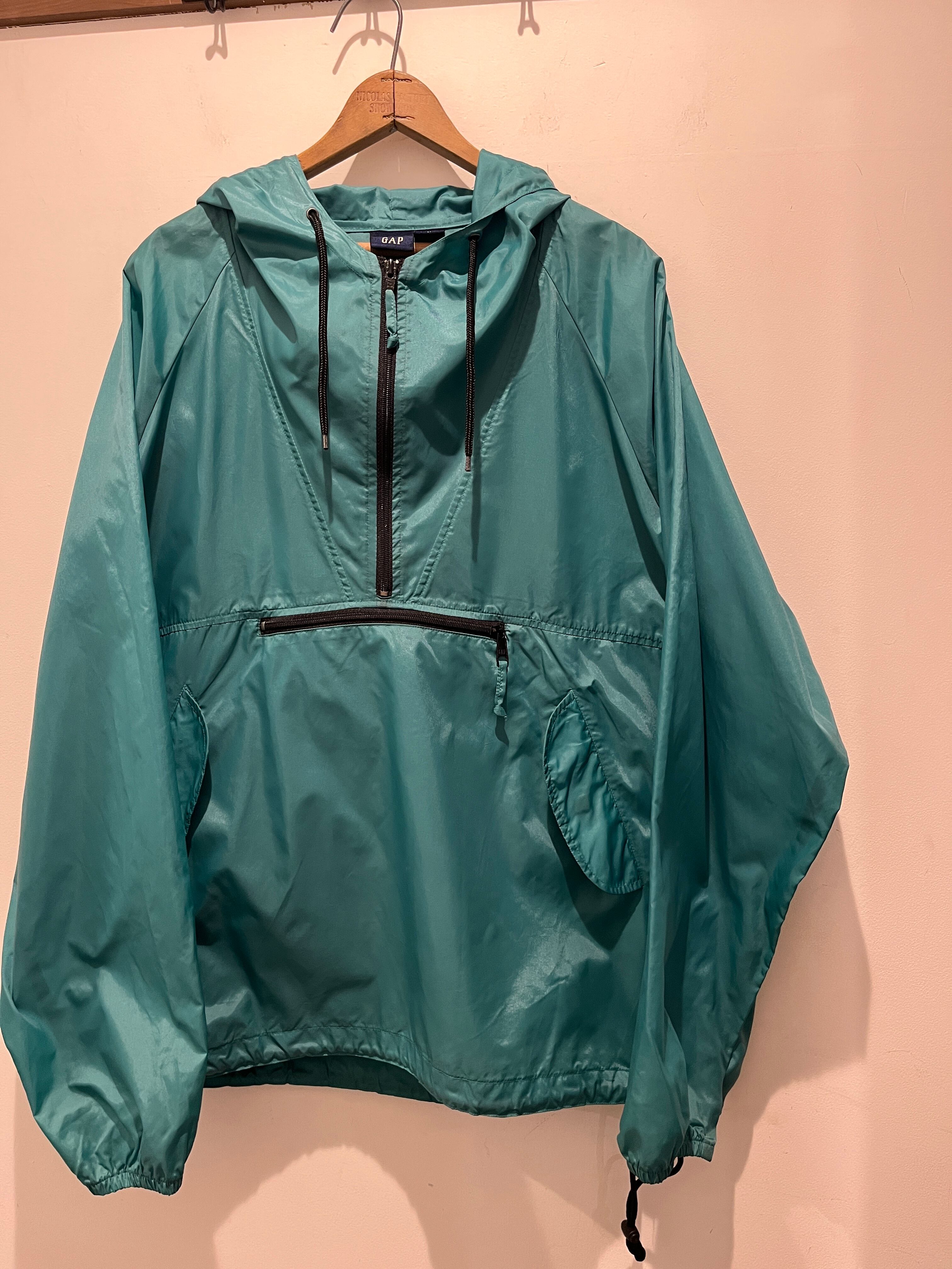 90年代ギャップのアノラックパーカーです。ネクストヴィンテージと呼ばれているOLD GAP。グリーンボディにブラックのジッパーのコントラストがとても良く、GAPロゴのジッパーも可愛いですね。フラップ付きのポケットに裾はドローコードで絞ることができ使い勝手の良い1着です。コンパクトにも持ち運べてユニセックスでオススメです。