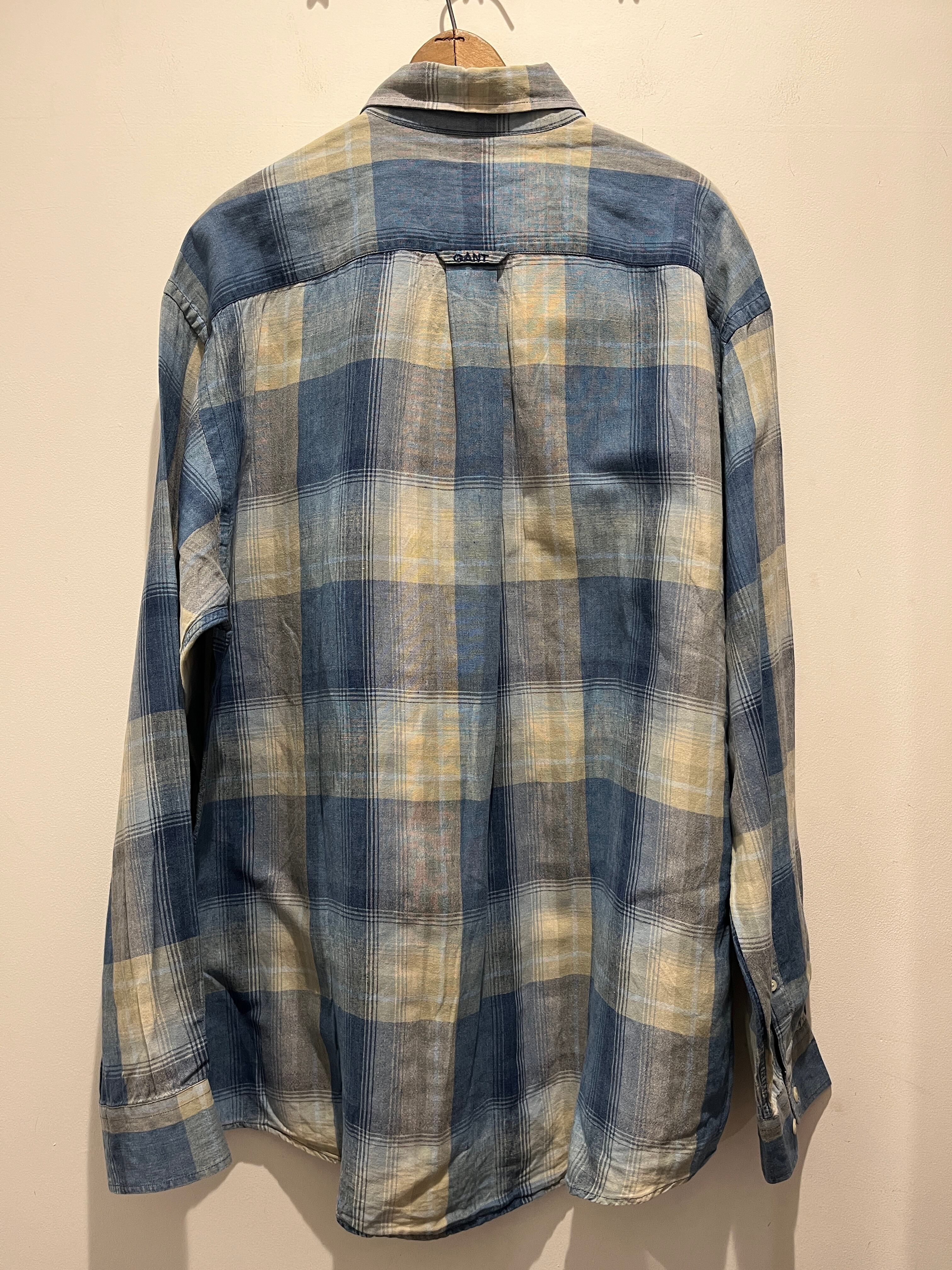 2000年代ガントのインディゴリネンシャツです。1949年にアメリカで設立されアイビーリーグの中のイエール大学を中心に人気を博したガント。こちらのシャツは2002年製のポルトガル製の物となります。ポケットの柄合わせもしっかりしていてインディゴリネンのチェックパターンがとても良いですね。大きめな作りですが肩の落ち感もあり上質でシルエットも良くオススメなシャツです。