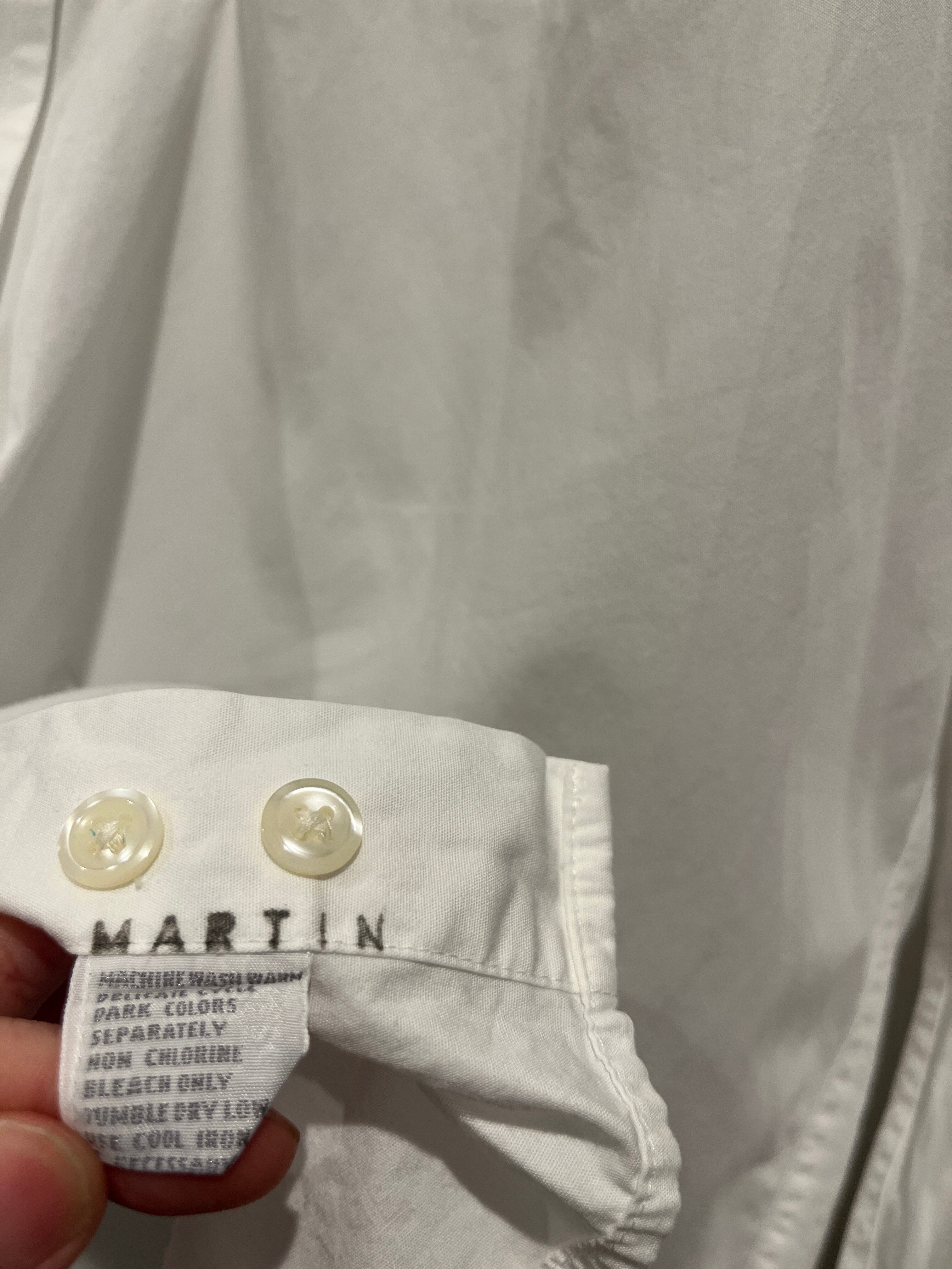 90年代の猫刺繍シャツです。白ベースで胸の猫の刺繍デザインが可愛い1着です。襟、袖リブが生成り色でツートン仕様になっているのもお洒落ですね。コットン生地に身幅たっぷりなシルエットとユニセックスでオススメなシャツです。