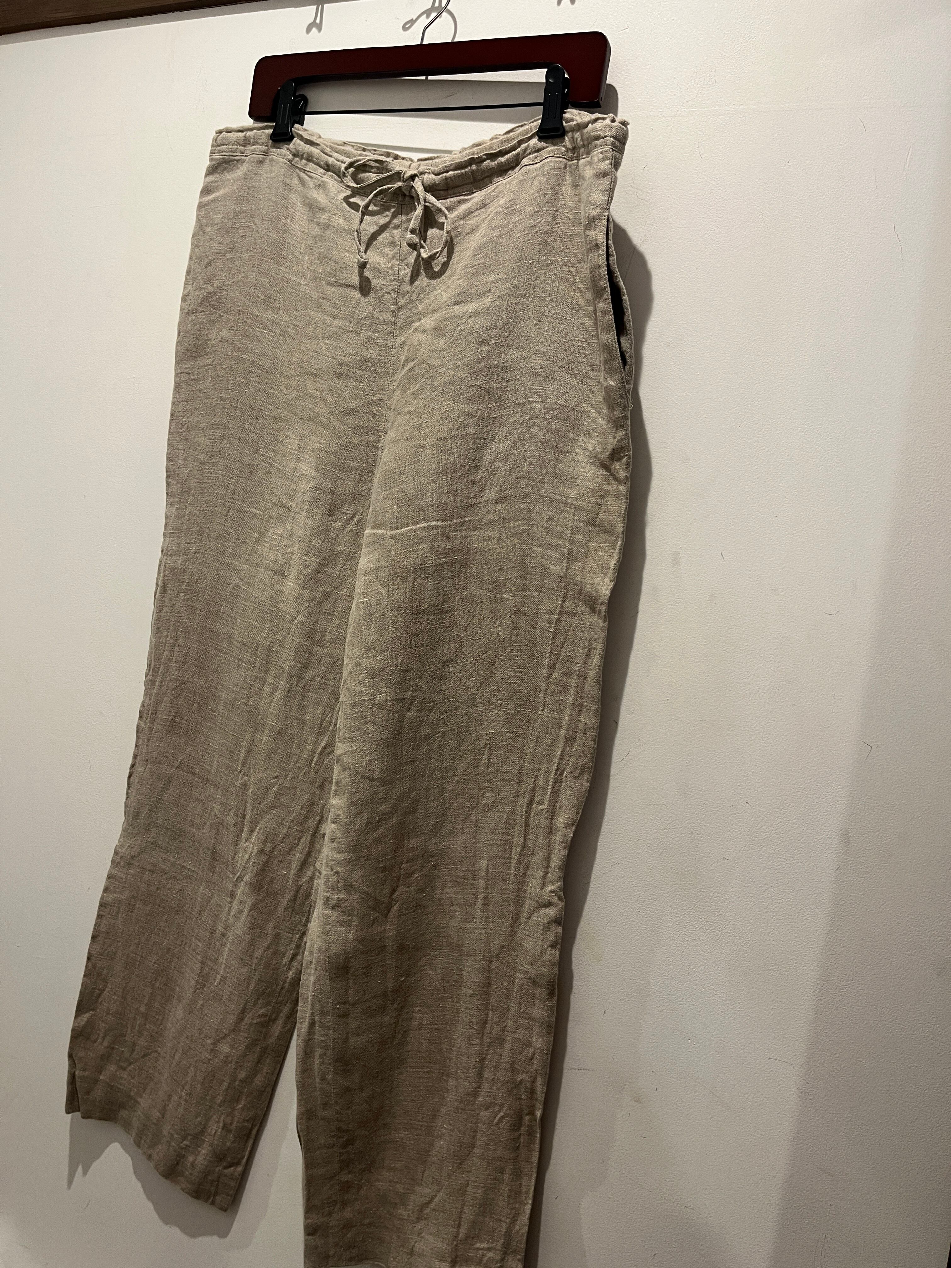 90年代ブルガリア製のリネンイージーパンツです。ベージュカラーのリネン100%で質感も良く、ウエストはゴム+紐で調整でき履き心地も非常に良いパンツです。レディース物ですが大きめな作り男性も着用していただけます。サイドポケット付きで、春・夏には涼しく履けてショートパンツが苦手な方にもオススメな1本です。