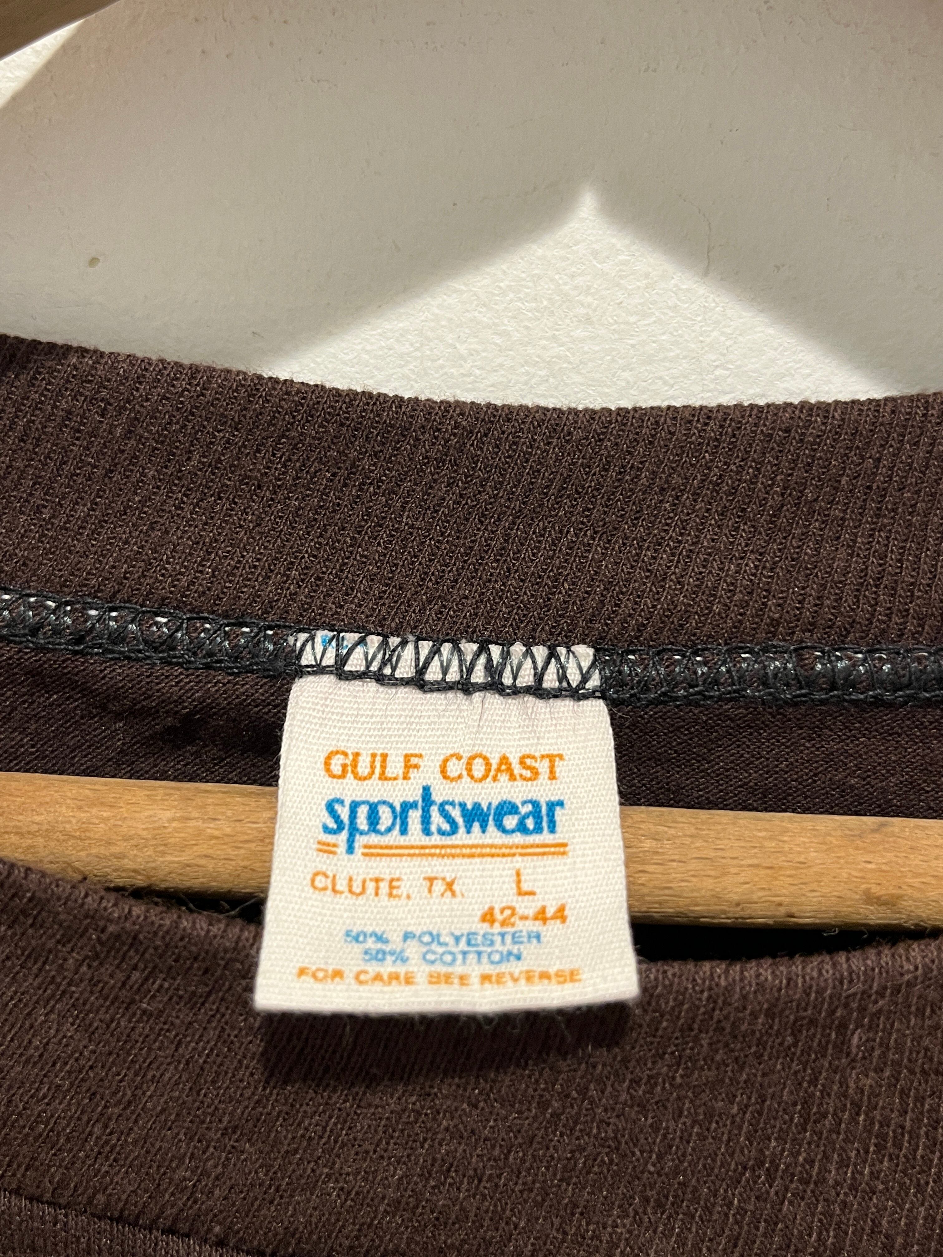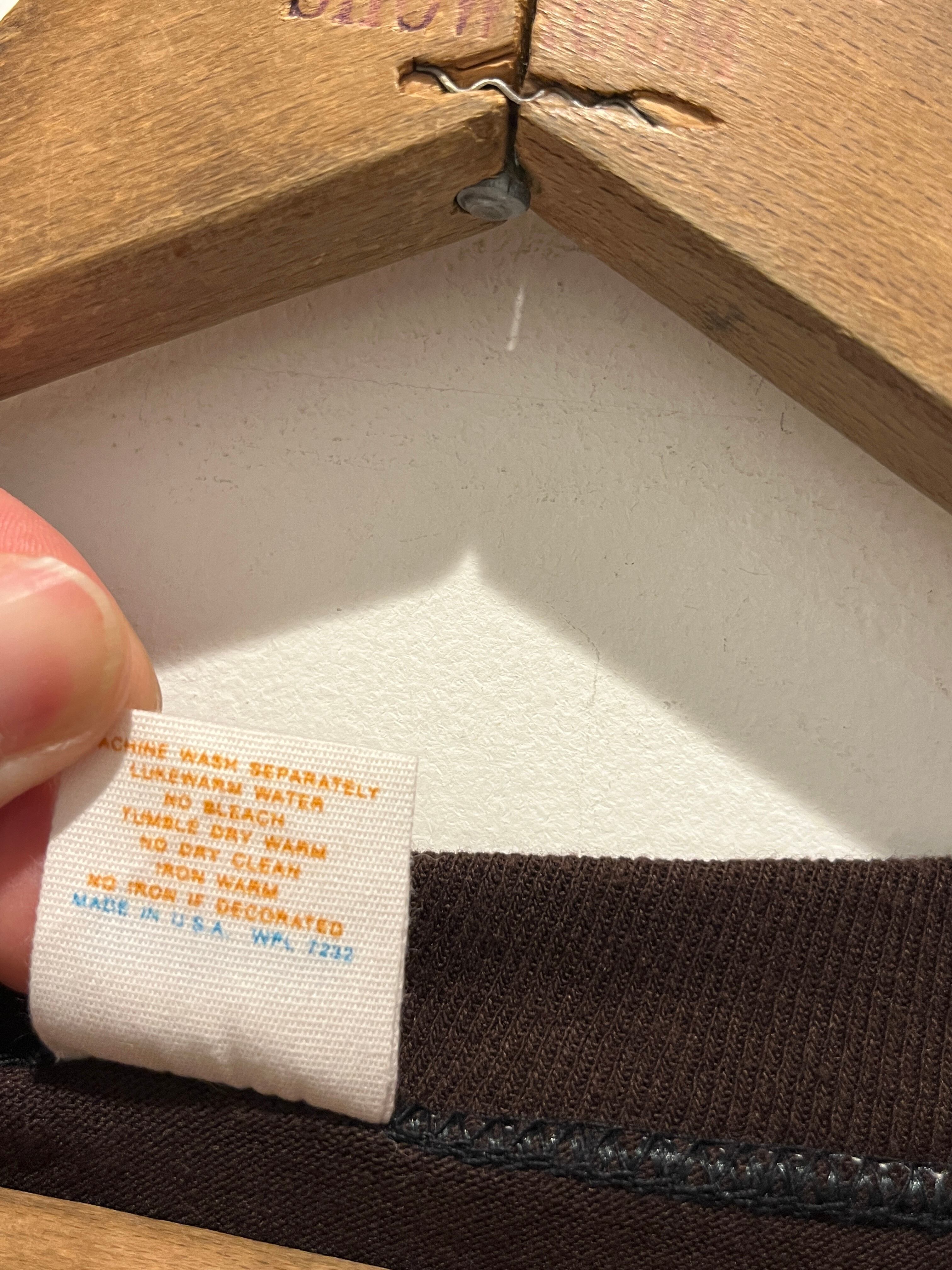 80年代アメリカ製のプリントTシャツです。意外と見かけないブラウンカラーのTシャツとなります。プリントはラバーでシンプルめなデザインもとても良いですね。袖、裾ともにシングルステッチとなります。柔らかい生地感でコンディションも良くユニセックスでオススメなTシャツです。