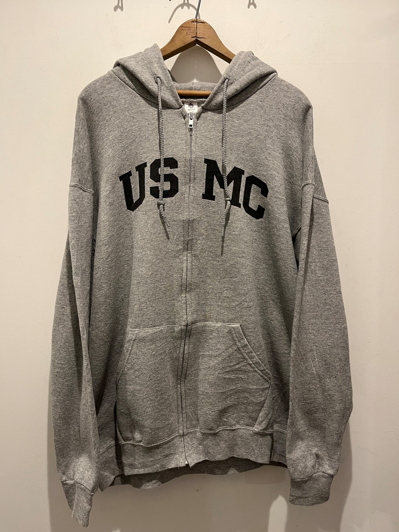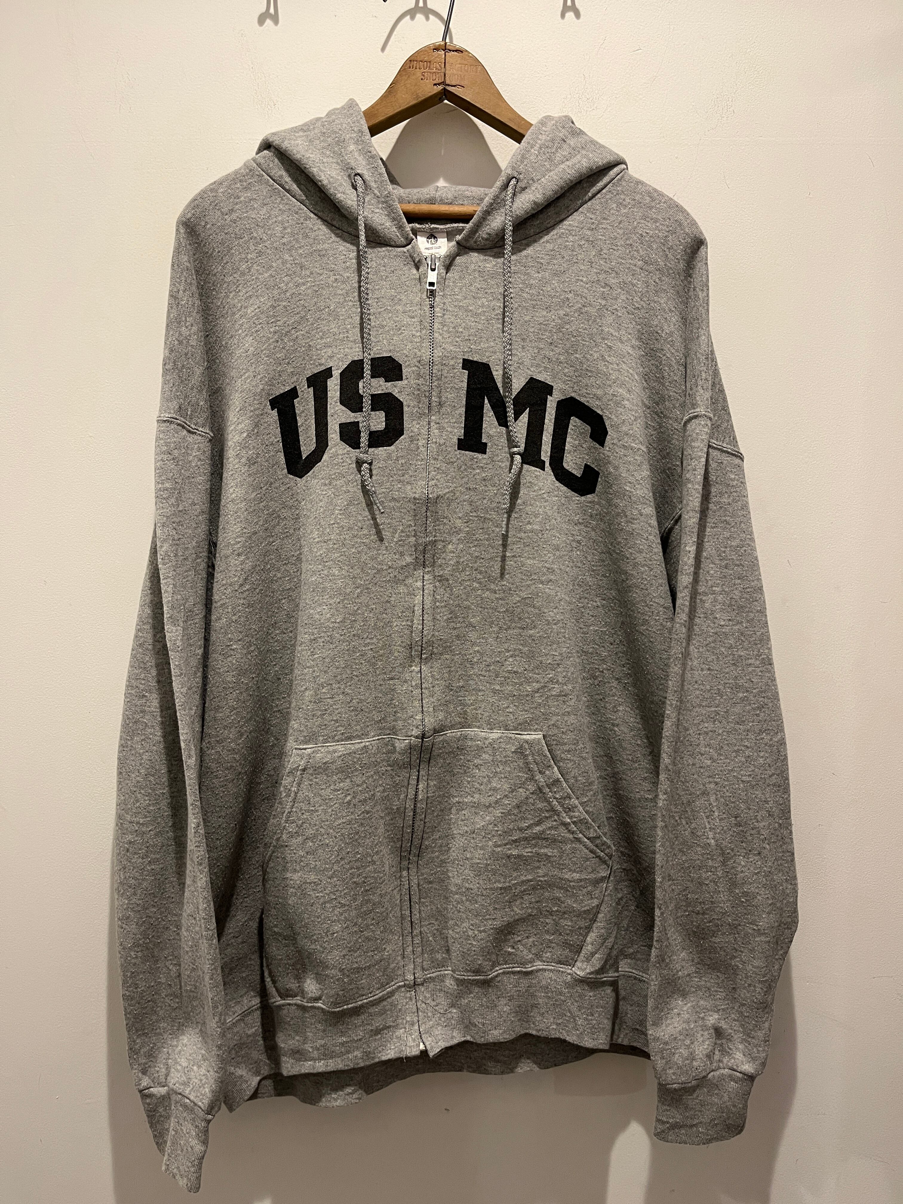 アメリカ軍USMCのジップパーカーです。グレーボディにブラックのラバープリントとなります。ARMYのフルジップパーカーは見かけますがUSMCのフルジップパーカーはあまり見かけませんね。厚すぎない生地感でサラッと着用でき、XLとゆったり目なサイズ感も良くオススメな1着です。