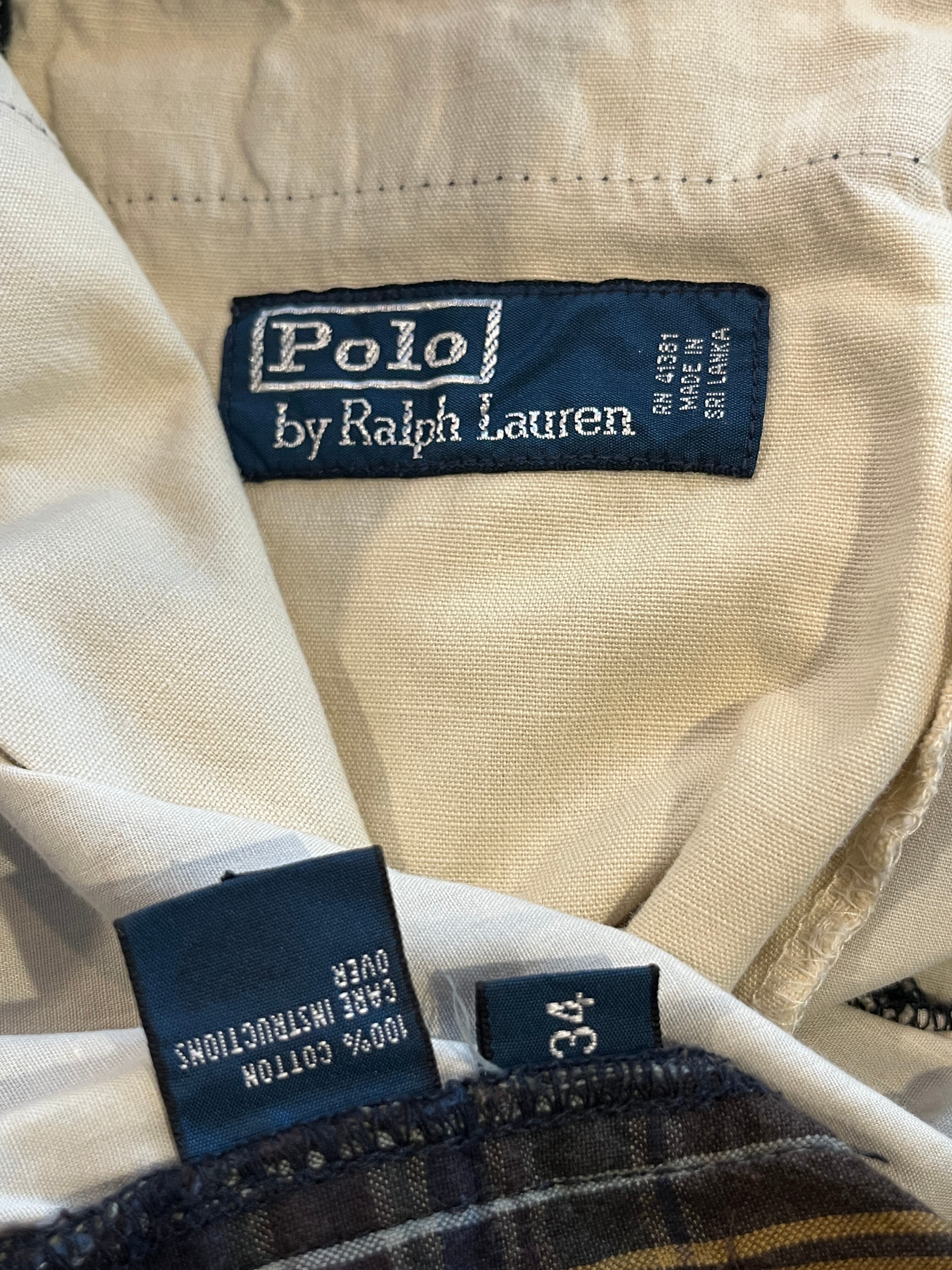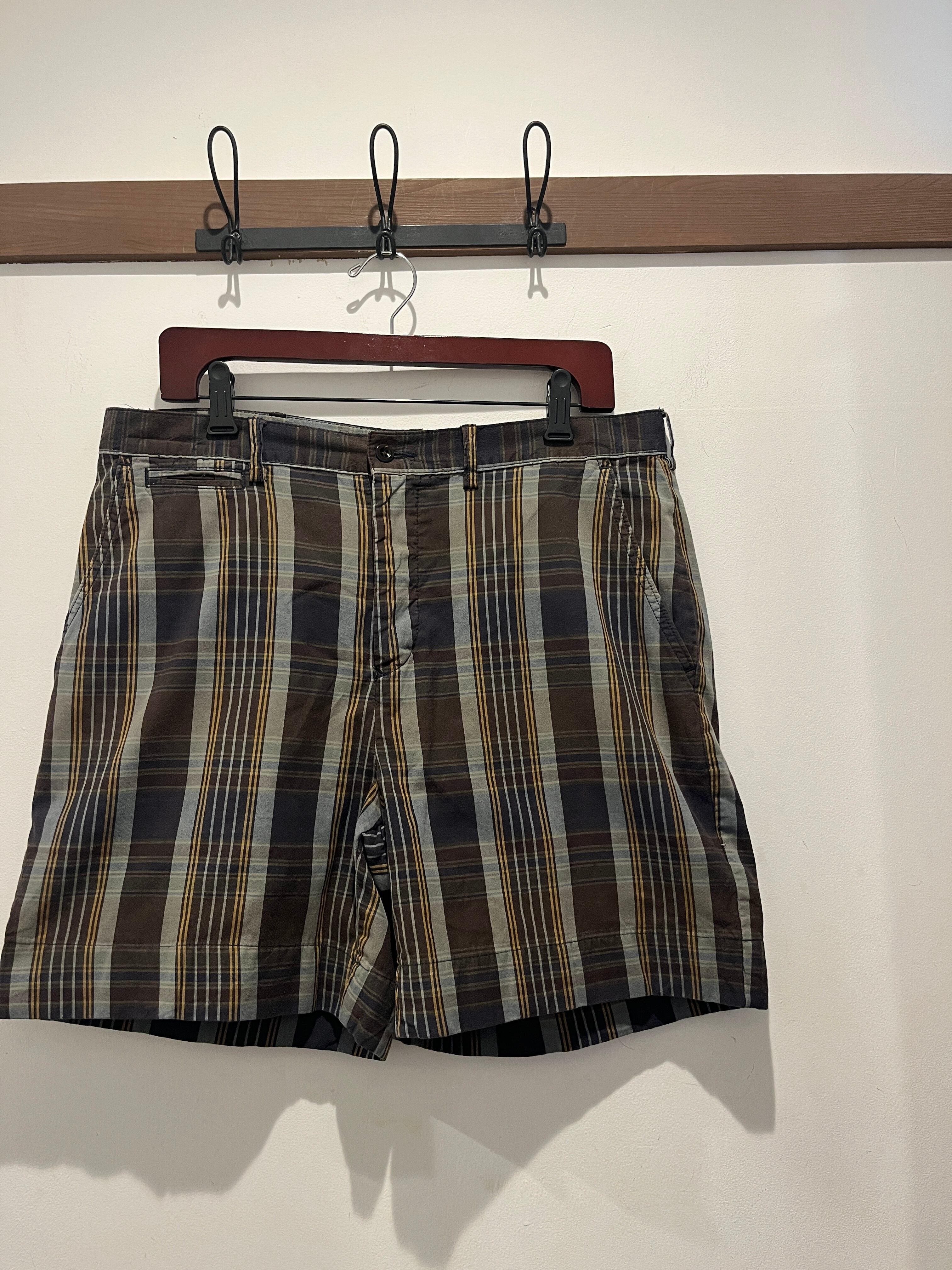 ラルフローレンのチェック柄ショーツです。ブラウンベースの落ち着いたチェック柄で薄手のコットン地がとても良い1本です。ボタンフライでバッグポケットはフラップ付きと細かいディテールもとても良いですね。革靴とも相性の良さそなショーツでコンディションも良くオススメです。
