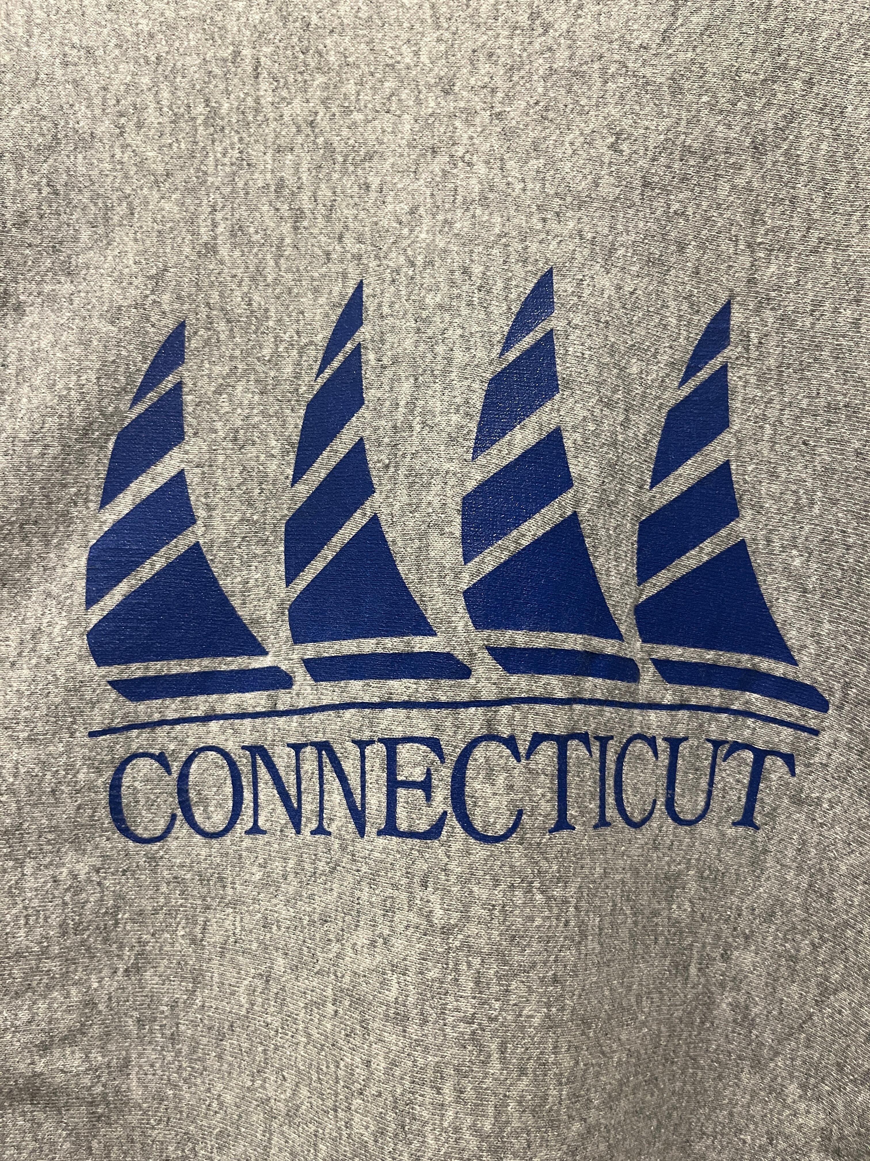 チャンピオンリバースウィーブのUSMAのようなツートンの霜降りボディがとても良い感じです。襟元は交差していてチャンピオンとはまた違った感じとなっているのもポイントですね。プリントはラバープリントであまり見ないデザインとオススメな1点です。