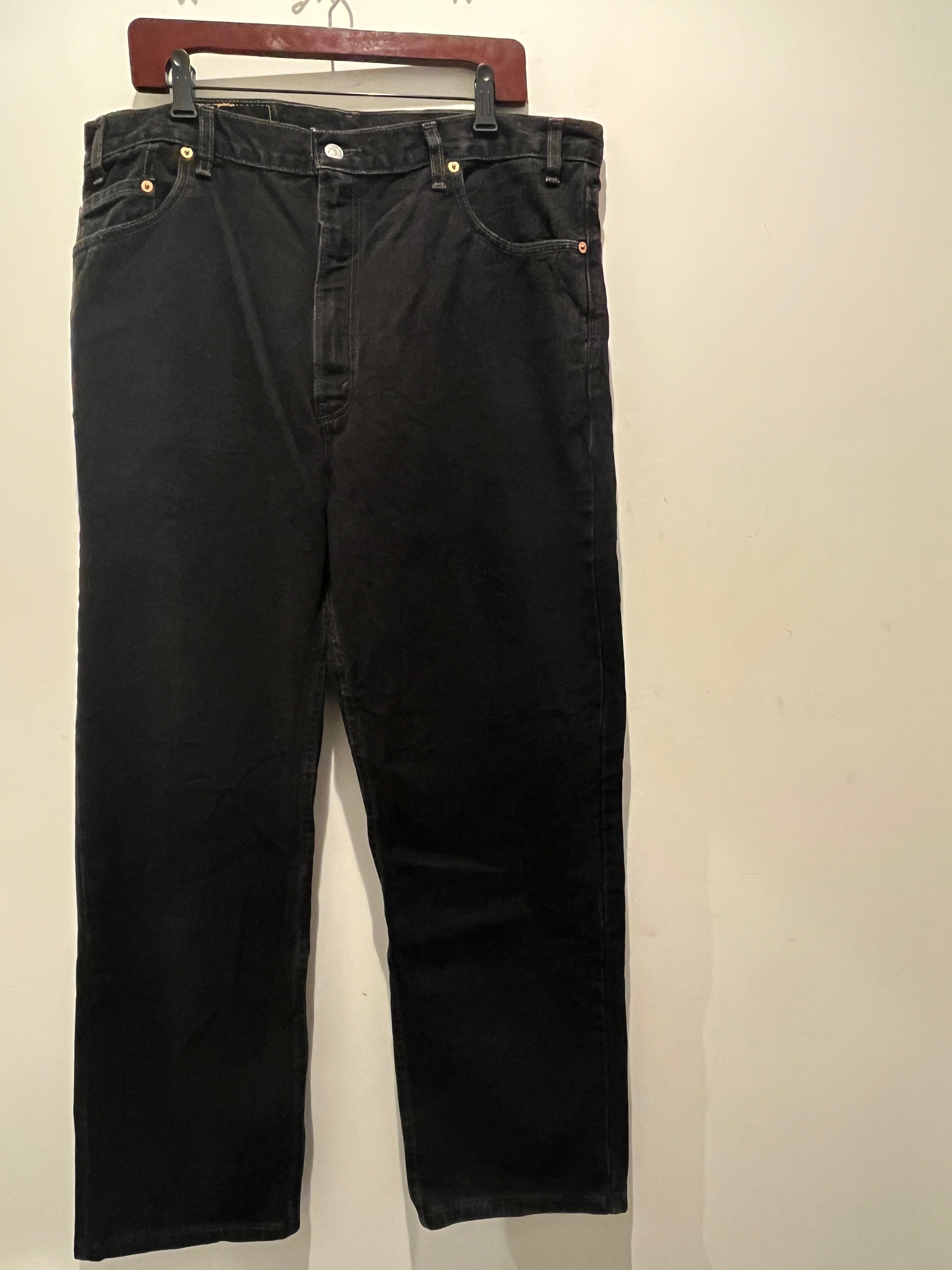 2000年代アメリカ製リーバイス505ブラックデニムパンツです。2002年3月製造の物で希少になってきたアメリカ製リーバイスです。Levi'sジッパーでトップボタン裏は513となります。W40表記の大きめなサイズ感でレングスは30表記で裾もオリジナルとなります。W36以上は見る機会が少なく大きめサイズを探していた方にはコンディションも良くオススメな1本です。