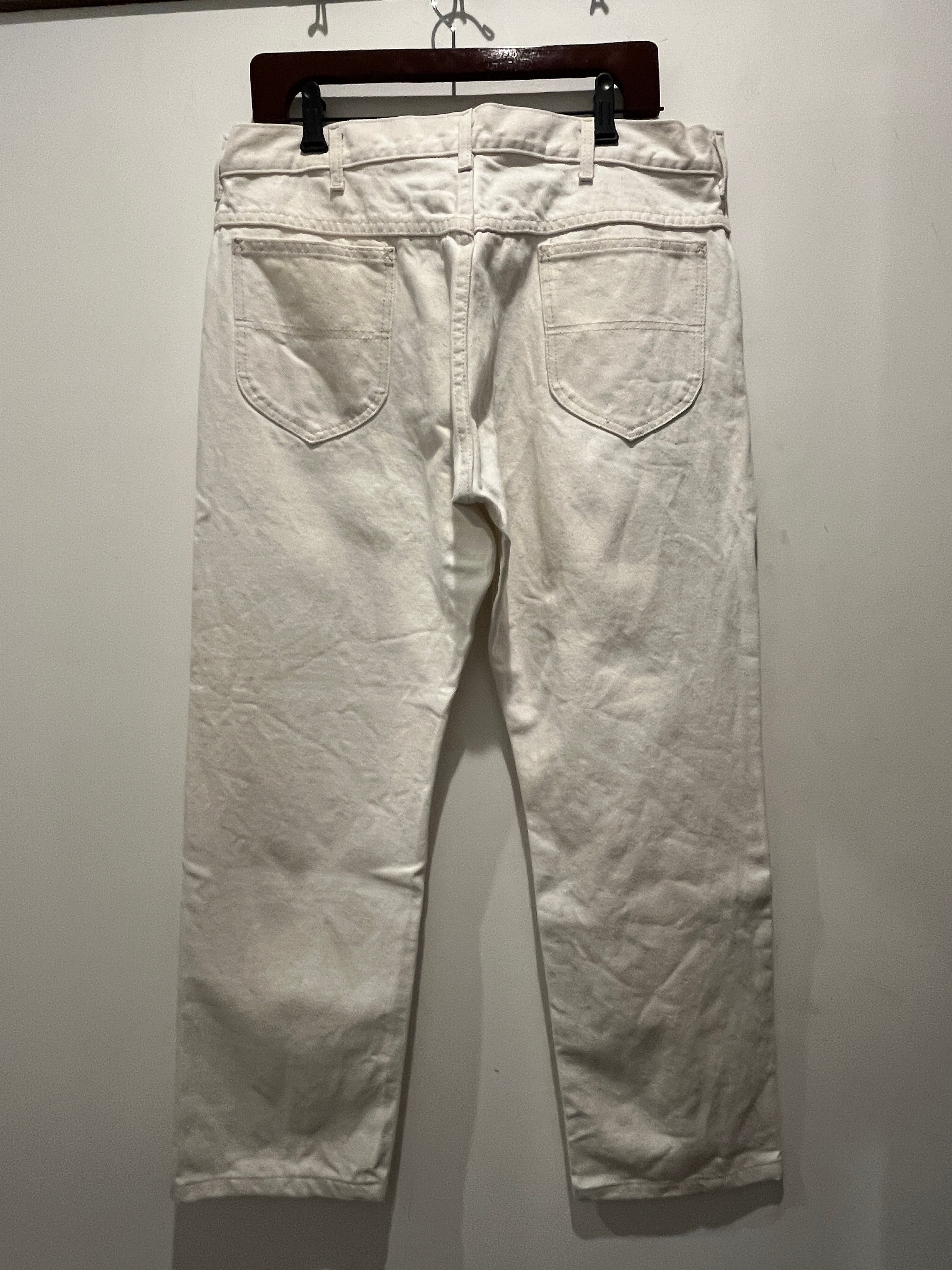 80年代〜90年代アメリカ製L.Lビーンのホワイトデニムパンツです。トップスより見かける事が少ないL.Lビーンのボトムス。少し太めのストレートシルエットでサイズ感がとても良いですね。ミリタリーやワークアイテムに白パンツを組み合わせても最高です。Leeと作りが似ているので一緒の工場で作られたかOEMで作られたと予想されます。白デニムでコンディションも良くオススメな1本です。