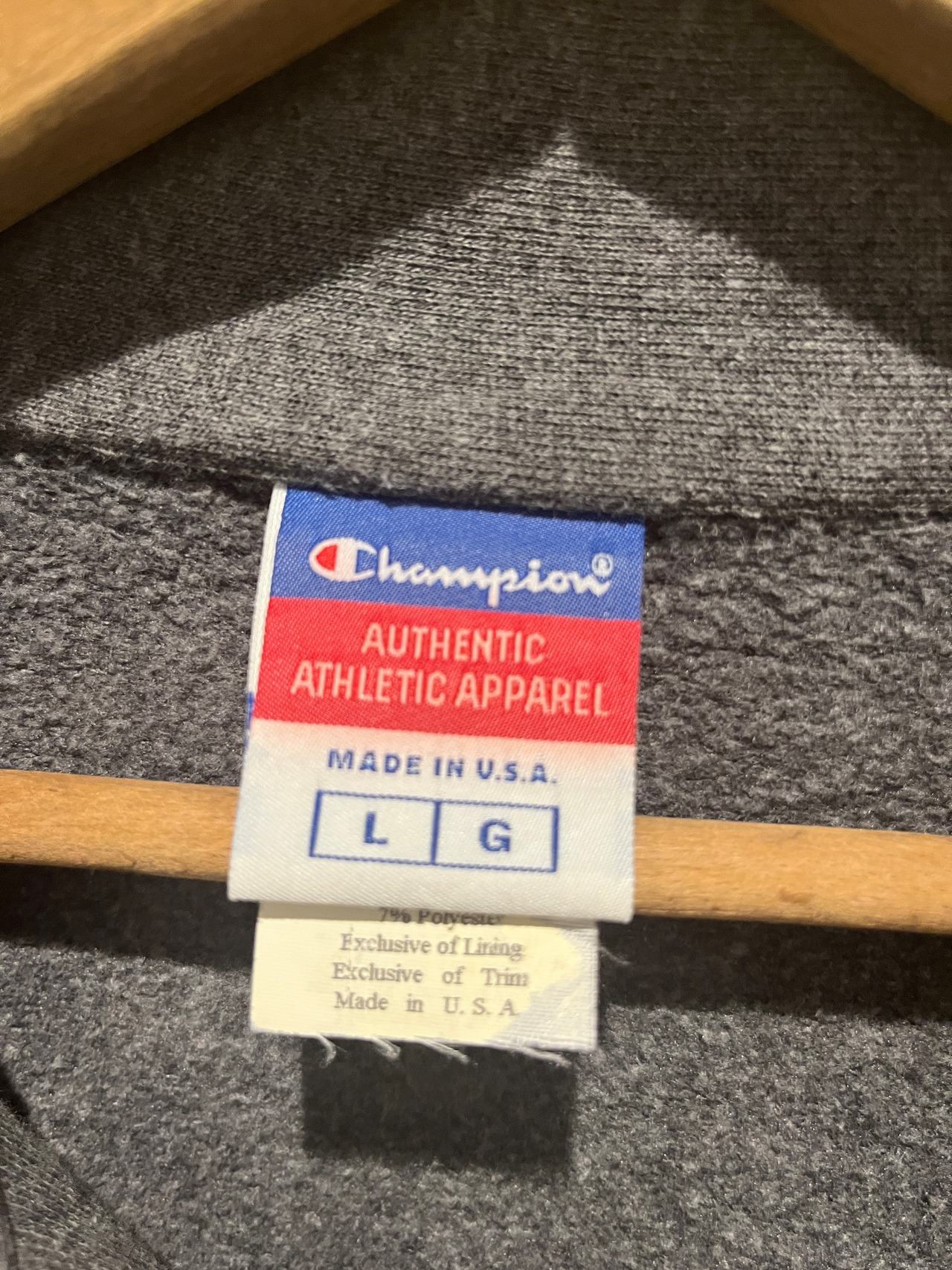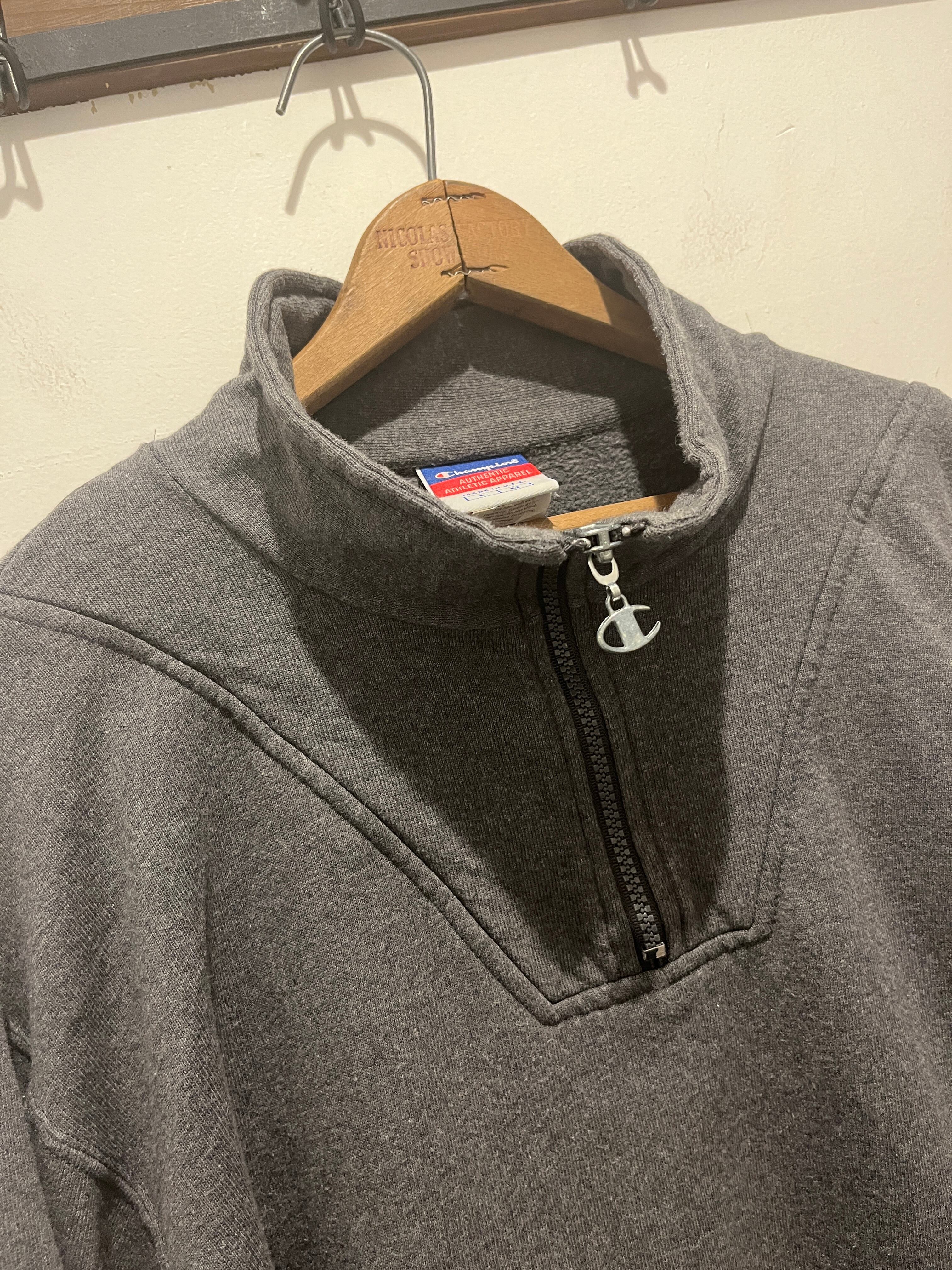 90年代アメリカ製チャンピオンのハーフジップスウェットです。チャコールグレーボディでハーフジップ仕様のスウェットとなります。このタグでアメリカ製は中々無い印象ですね。チャンピオンのロゴジップで裾にはスリットが入ります。コンディションも良くユニセックスでオススメなスウェットです。