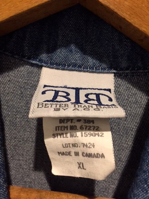 カナダ製で80年代の物となります。ボタン合わせがレディース合わせですがバッグにダーツがはいっていないのでメンズでも問題無く着用出来るアイテムです。ロング丈のデニムアイテムはUsedでもなかなか無く見つかりずらいアイテムです。ボタンを全て開けてサラッと着れるのが良いですね。