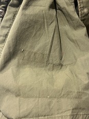 画像の通り右袖に擦れとバッグに小さなシミがございます。大きなダメージは無く着用には問題無いコンディションです。