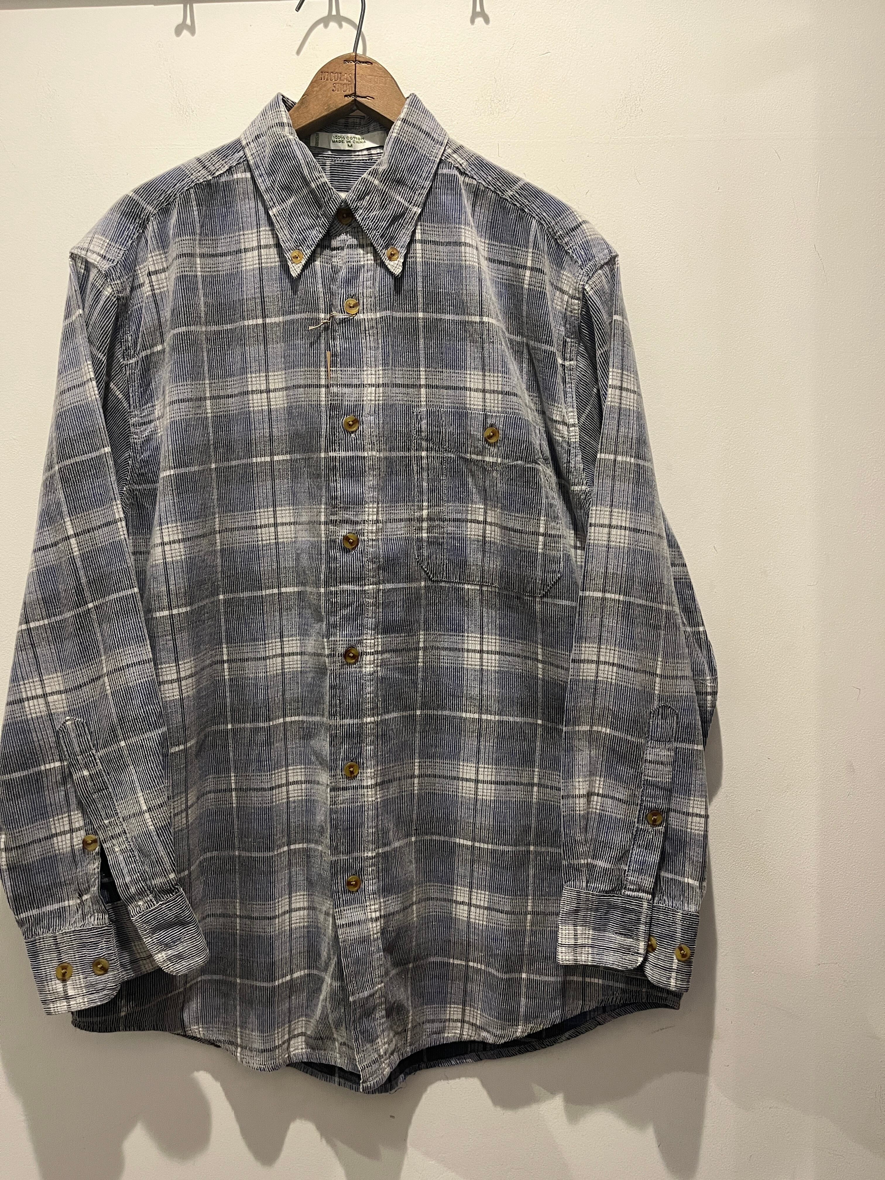 90年代〜2000年代オービスのコーデュロイシャツです。薄っすらとブルーベースのチェック柄で裏地の方が濃い色味となっています。ボカシの感じがオンブレの雰囲気もありとても良いですね。Mサイズ表記ですが大きめな作りとなっています。コーデュロイでチェック柄というのも中々無くオススメです。