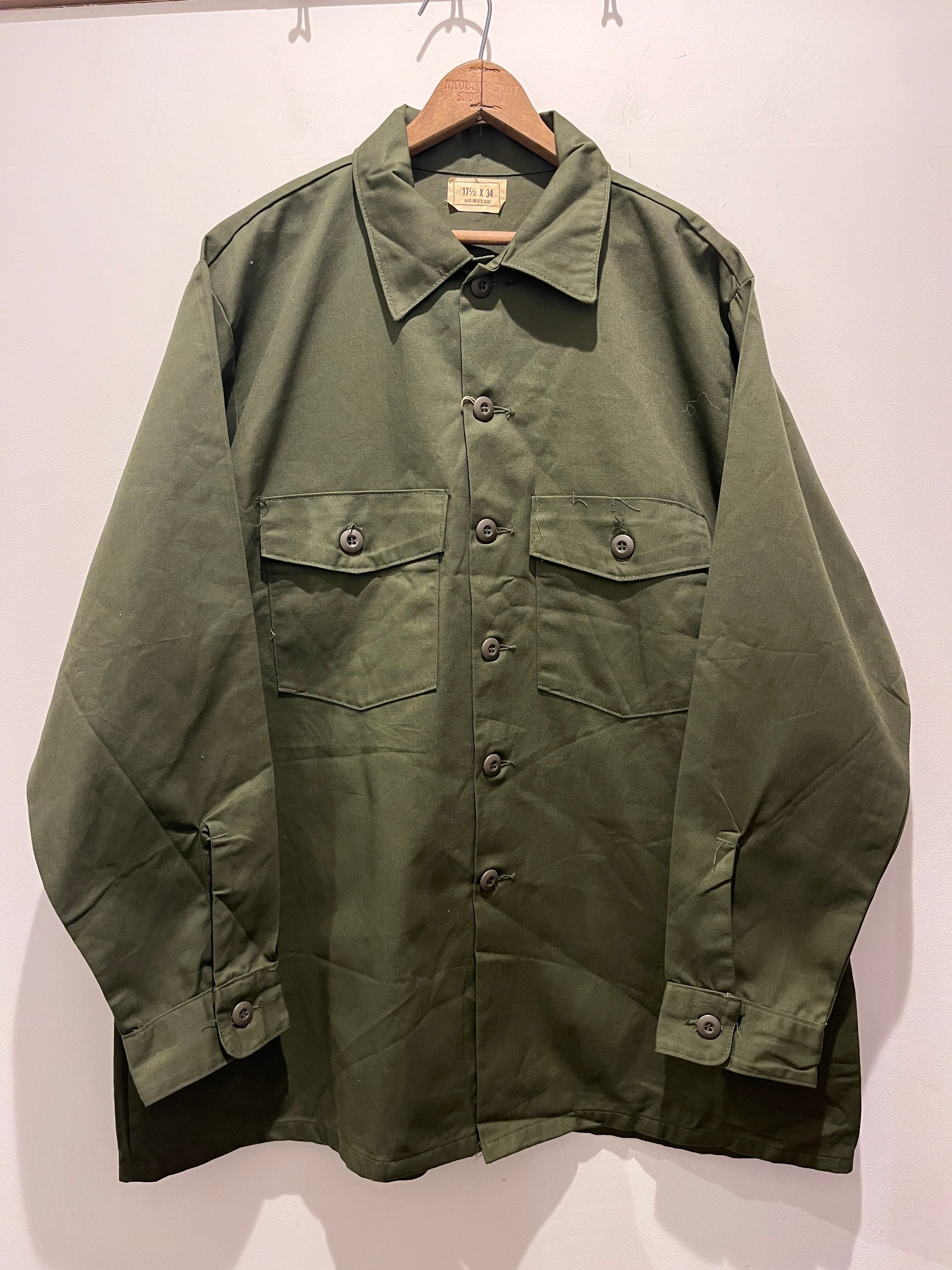 80年代USアーミーのユーティリティーシャツです。ワンウォッシュ程度のとても綺麗なコンディションでワッペンなどが付く前の物となります。そしてサイズが17ハーフと中々出てこない大きいサイズ感で身幅もたっぷりあり、シャツジャケットの様に着れるサイズ感となります。コンディションも良く大きいサイズを探していた方にはオススメな1着です。