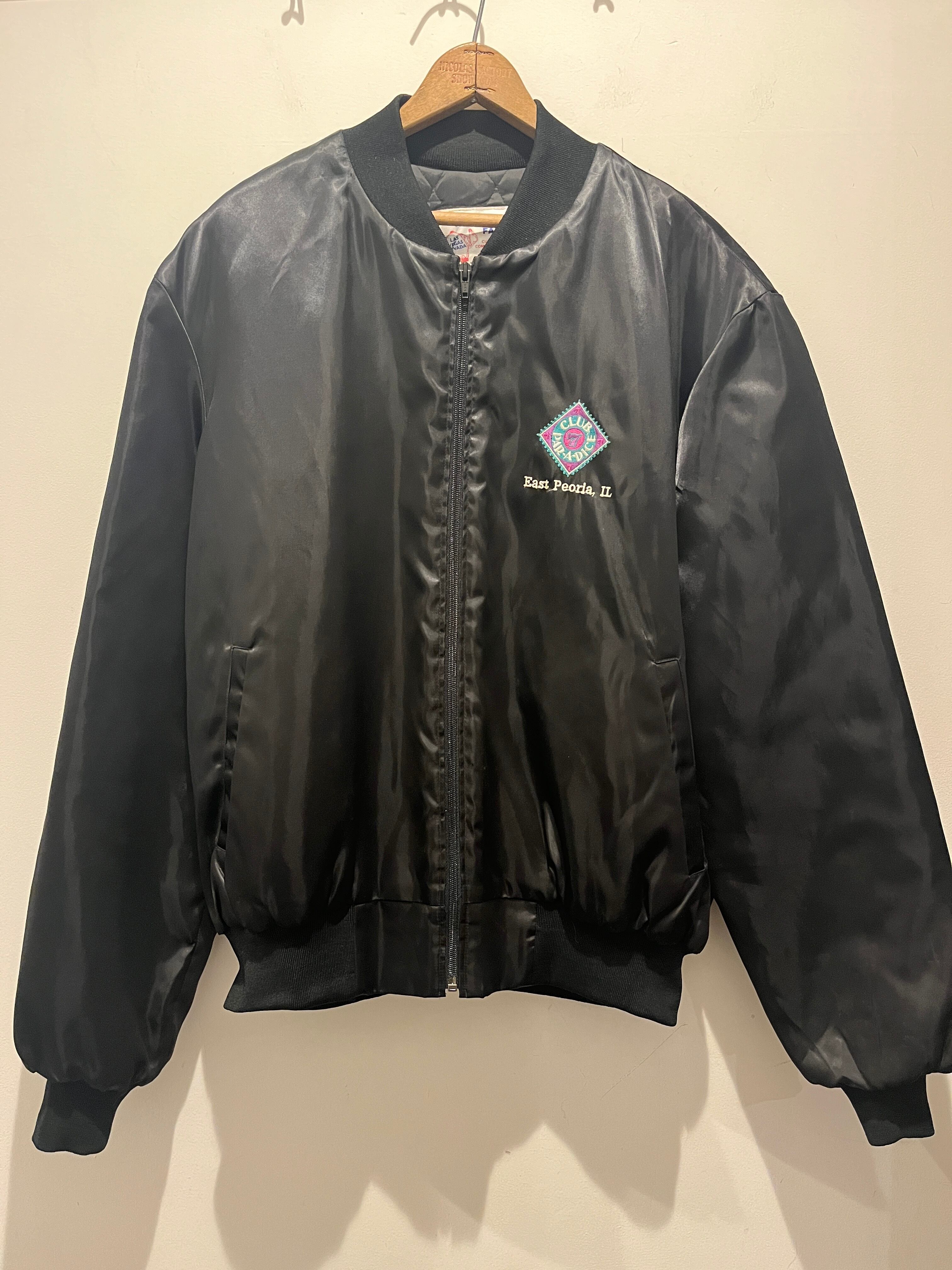 80年代〜90年代アメリカ製のナイロンジャケットです。オールブラックカラーでバッグにもチェーンステッチで入るカッコ良い1着です。裏地がキルティングになっていて温かさもあるのが最高ですね。身幅もたっぷりでシルエットも良くオススメなアイテムです。