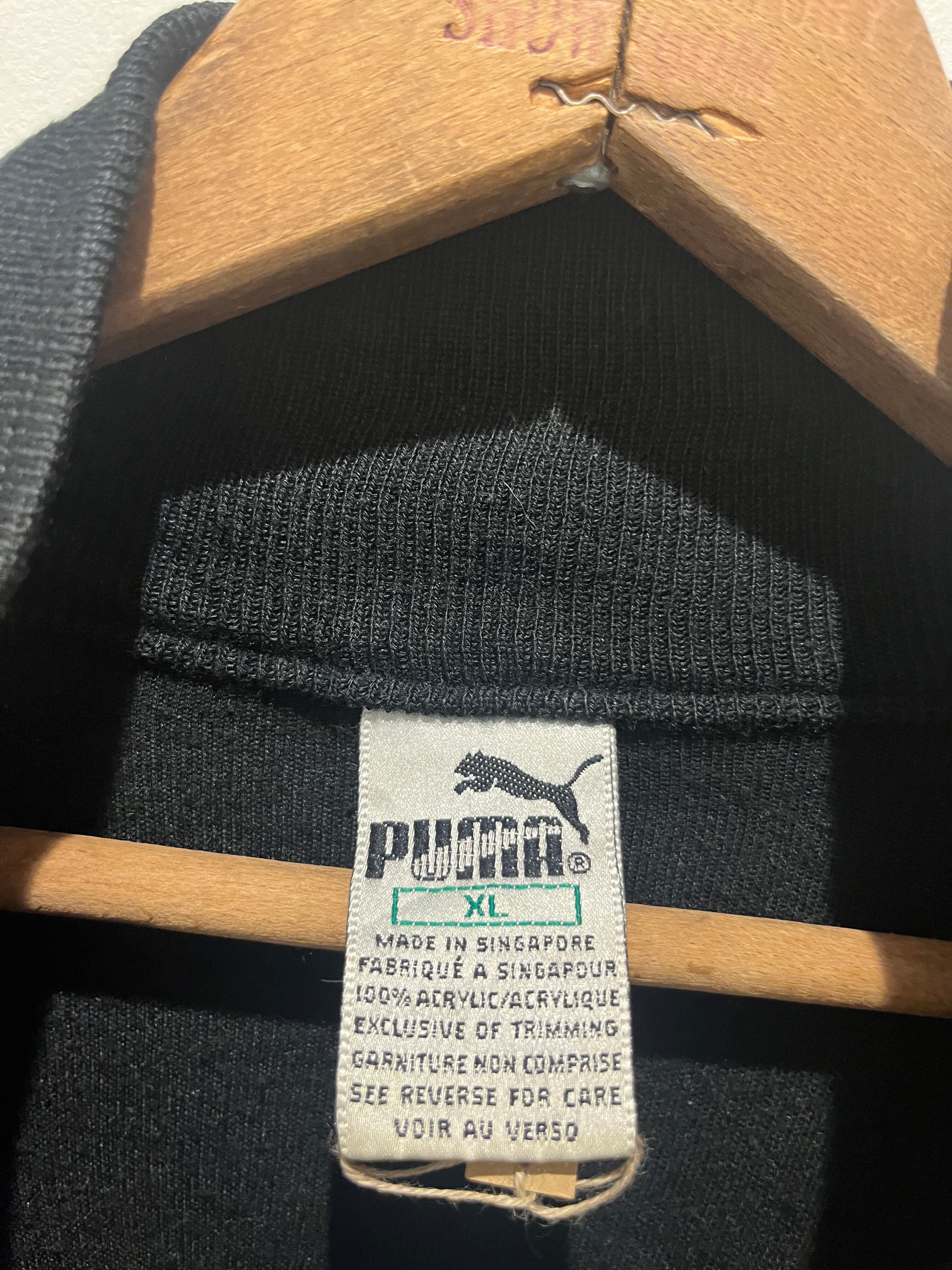 80年代プーマのトラックジャケットです。ブラックカラーでレッド×ホワイトのラインが入るトラックジャケットとなります。当時の持ち主が付けたと思われるワッペンが付いていて、鳥がプーマを見ている感じもまた良いですね。80年代の物ですと小さめなサイズ感のトラックジャケットが多い印象ですがこちらは大きめなサイズ感とオススメなアイテムとなります。