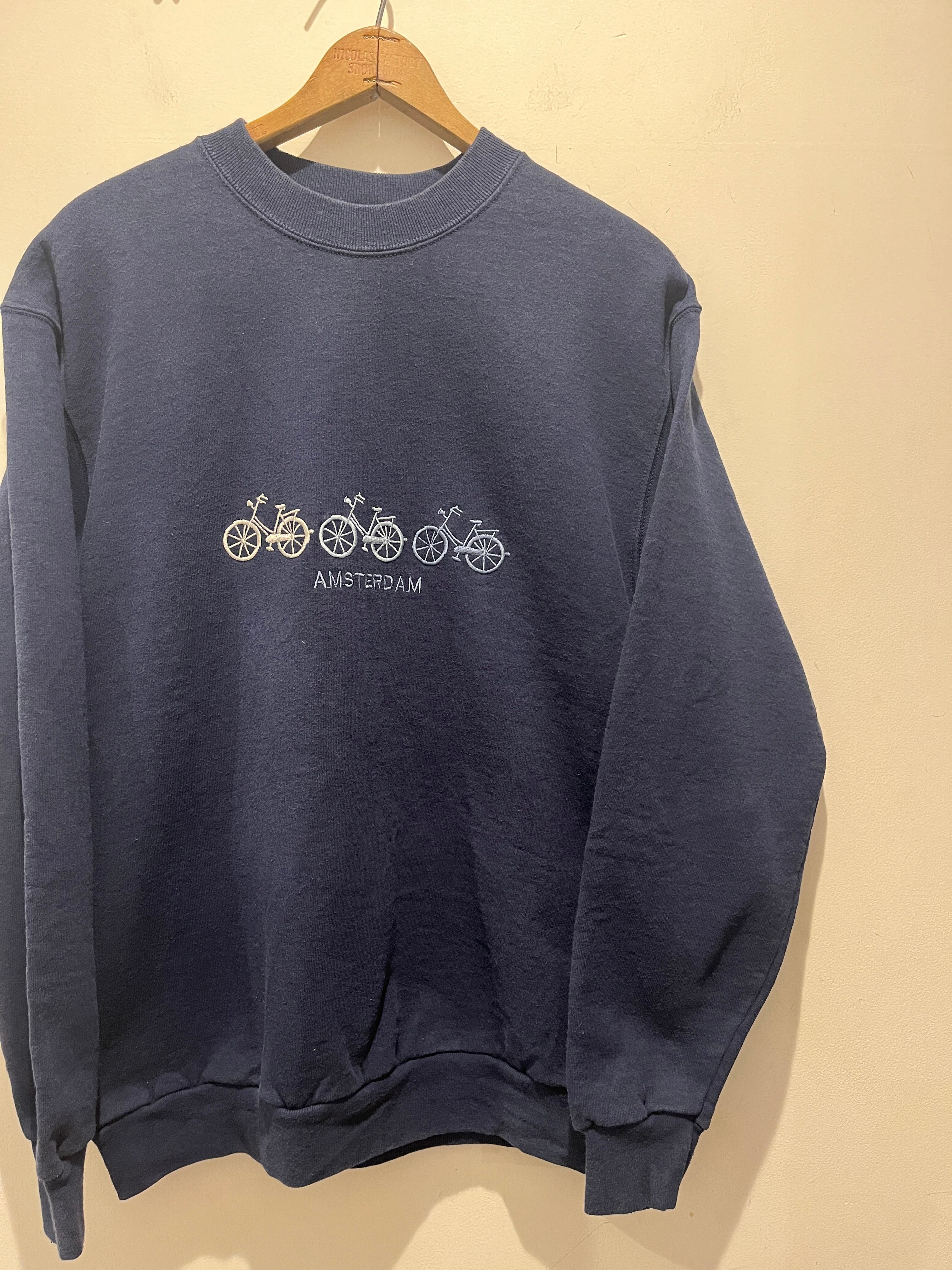 90年代アメリカ製スクリーンスターズのスウェットです。ネイビーカラーに自転車の刺繍がシンプルですがお洒落な1着です。コットンも70%としっかりした生地感です。少しフェードしたネイビーカラーも良くユニセックスでオススメなスウェットです。
