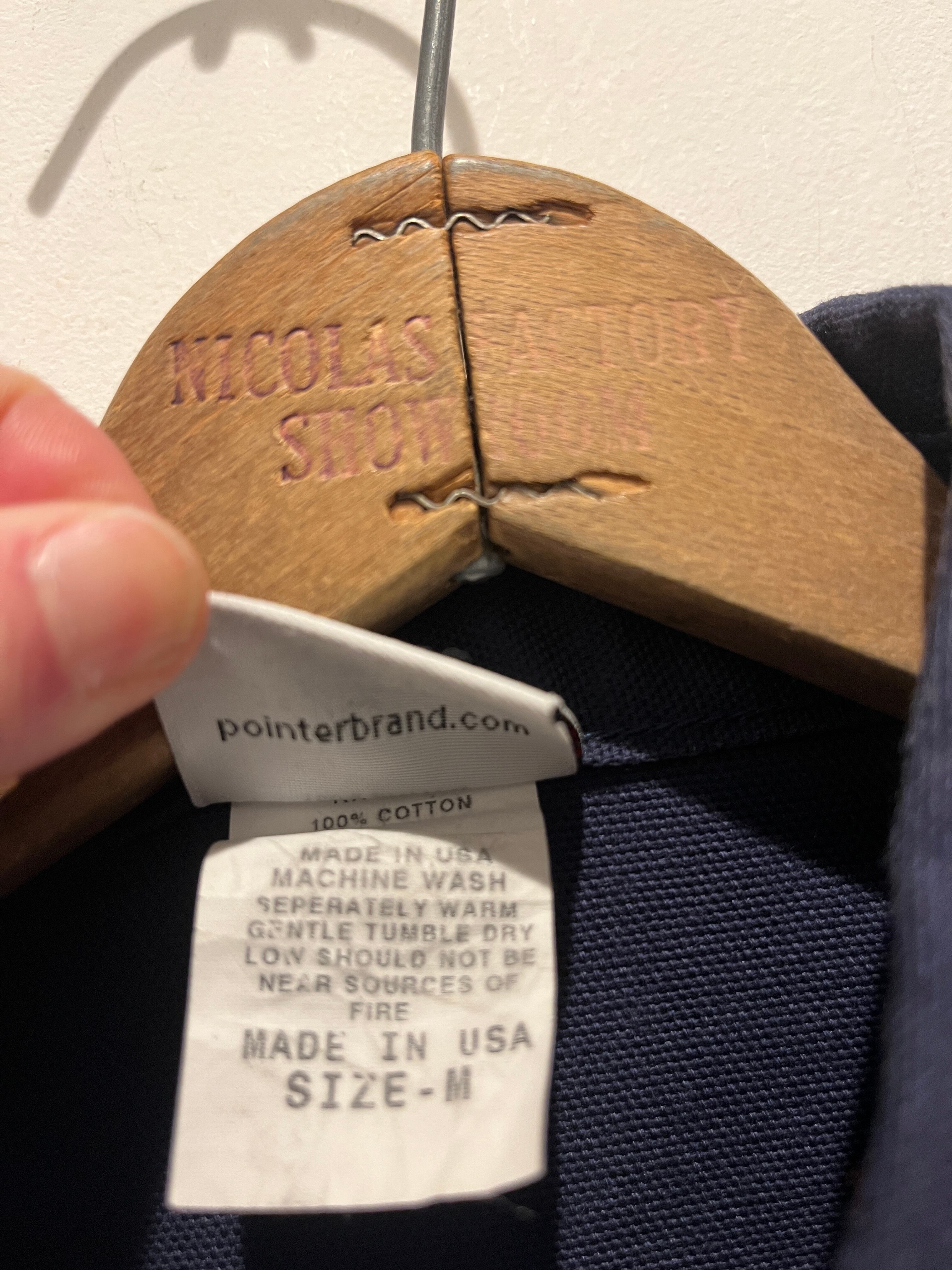 2000年代アメリカ製ポインターのカバーオールです。1913年創業の老舗ブランドPOINTER。100年超えても「MADE IN USA」を貫いてるのがカッコイイですね。こちらは2000年以降の物となりますが、ポケットに迷彩を使っていたりデザインがお洒落な1着となります。袖にはWOOLFのワッペンが付いていて、前の所有者が付けたのか、デザインで付いているのか謎ですがアクセントになっていて良いですね。デザインカバーオールとして着用しやすくユニセックスでオススメなアイテムです。