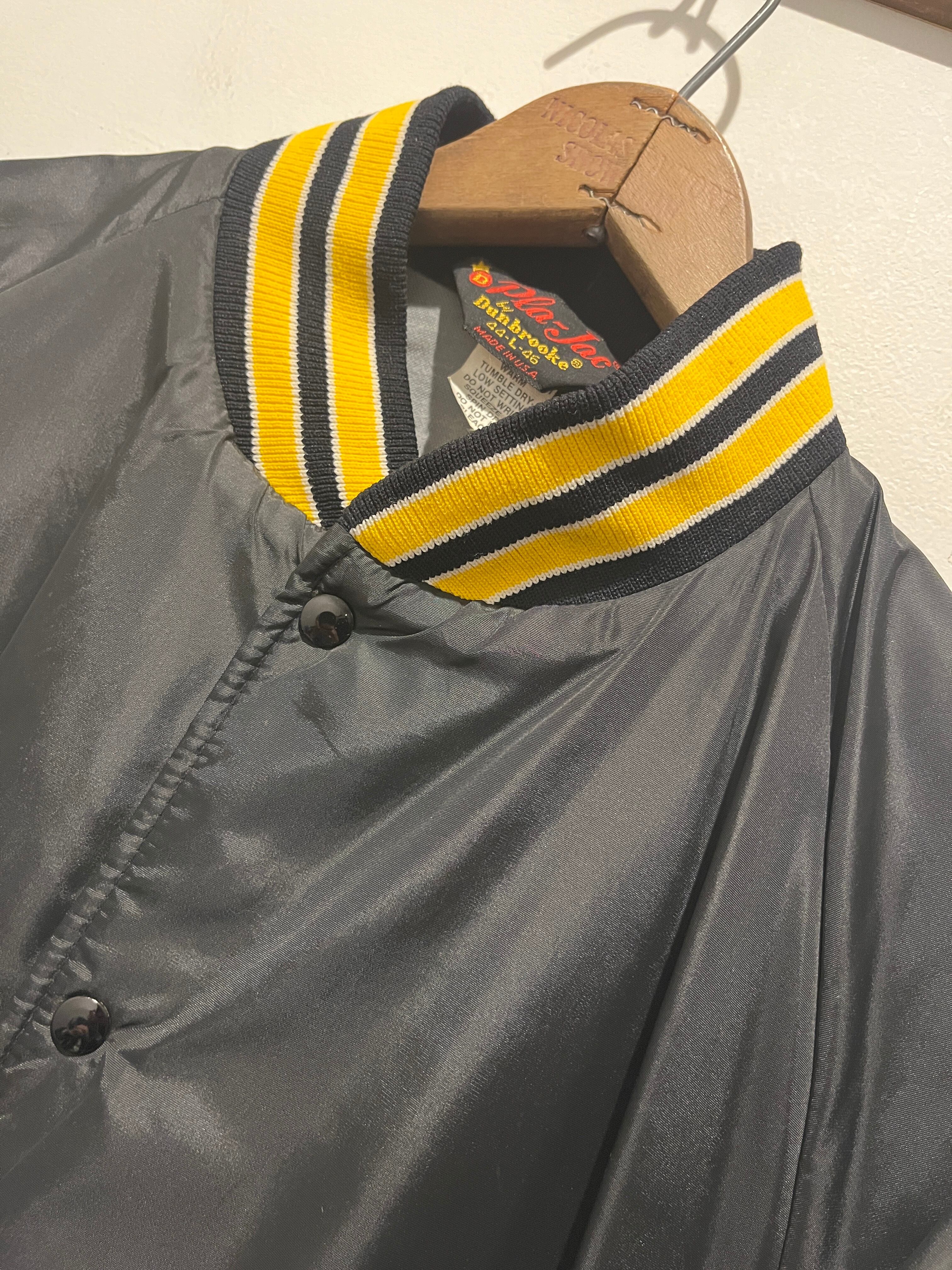 80年代アメリカ製のナイロンスタジャンです。ブラックカラーにリブがイエローラインと配色がとても良い1着です。そしてバッグのプリントがファーマーズ系で可愛くお洒落なデザインですね。コンディションも良くユニセックスでオススメなアウターです。