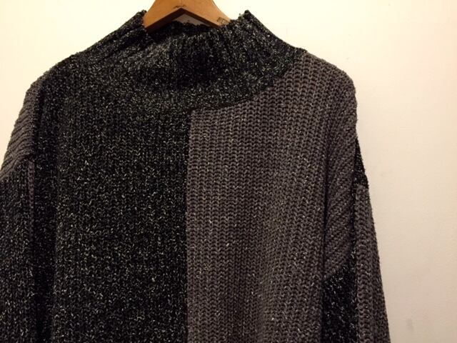 ブラック×グレーのバイカラーです。モノトーンの組み合わせなのでそこまで派手にならなく合わせやすく個性が出る1着です。スリット入りで袖先、裾先のステッチのデザインも良くモックネックというのもポイントです。丈が長めで形が綺麗なのも良いですね。