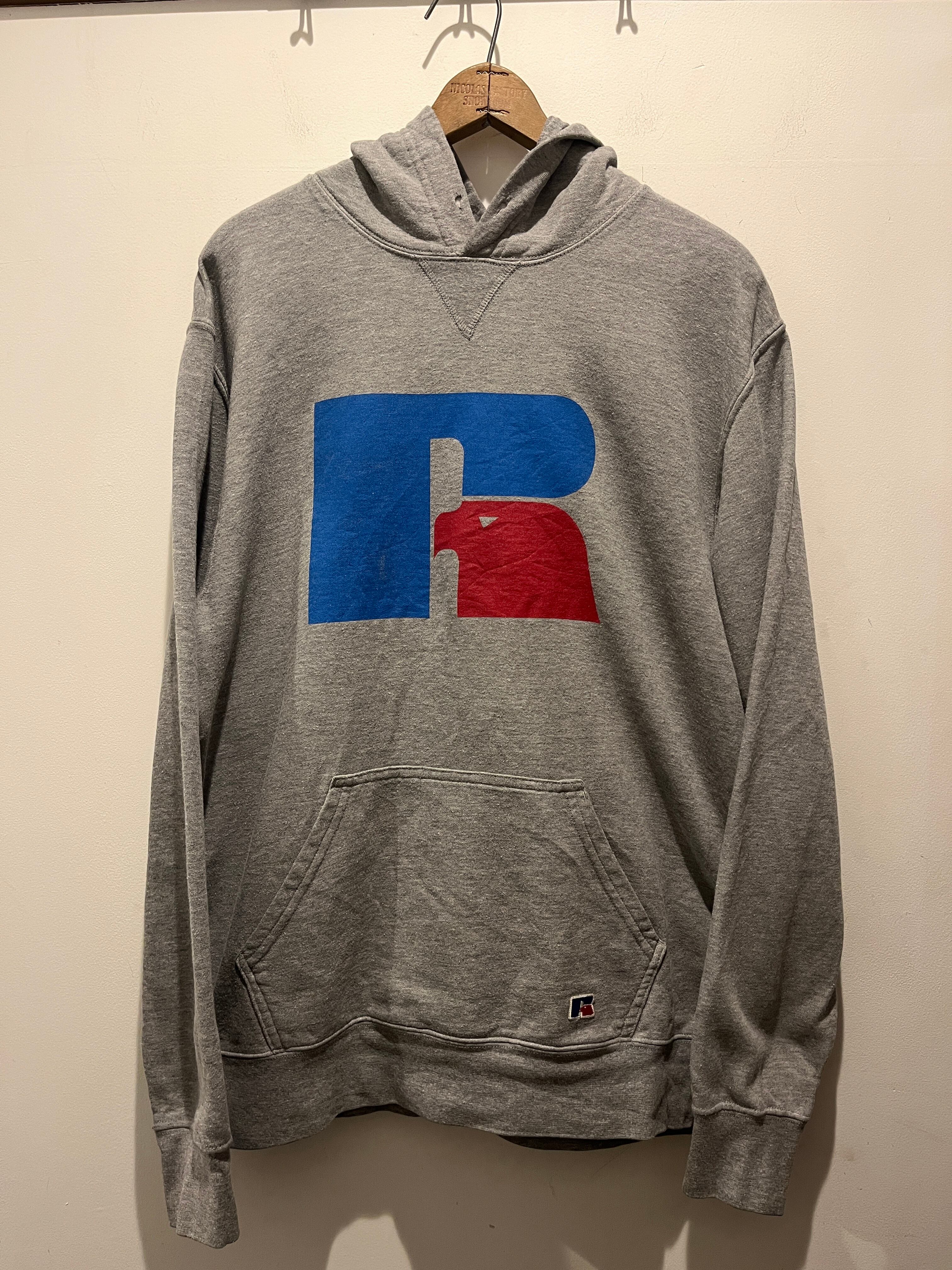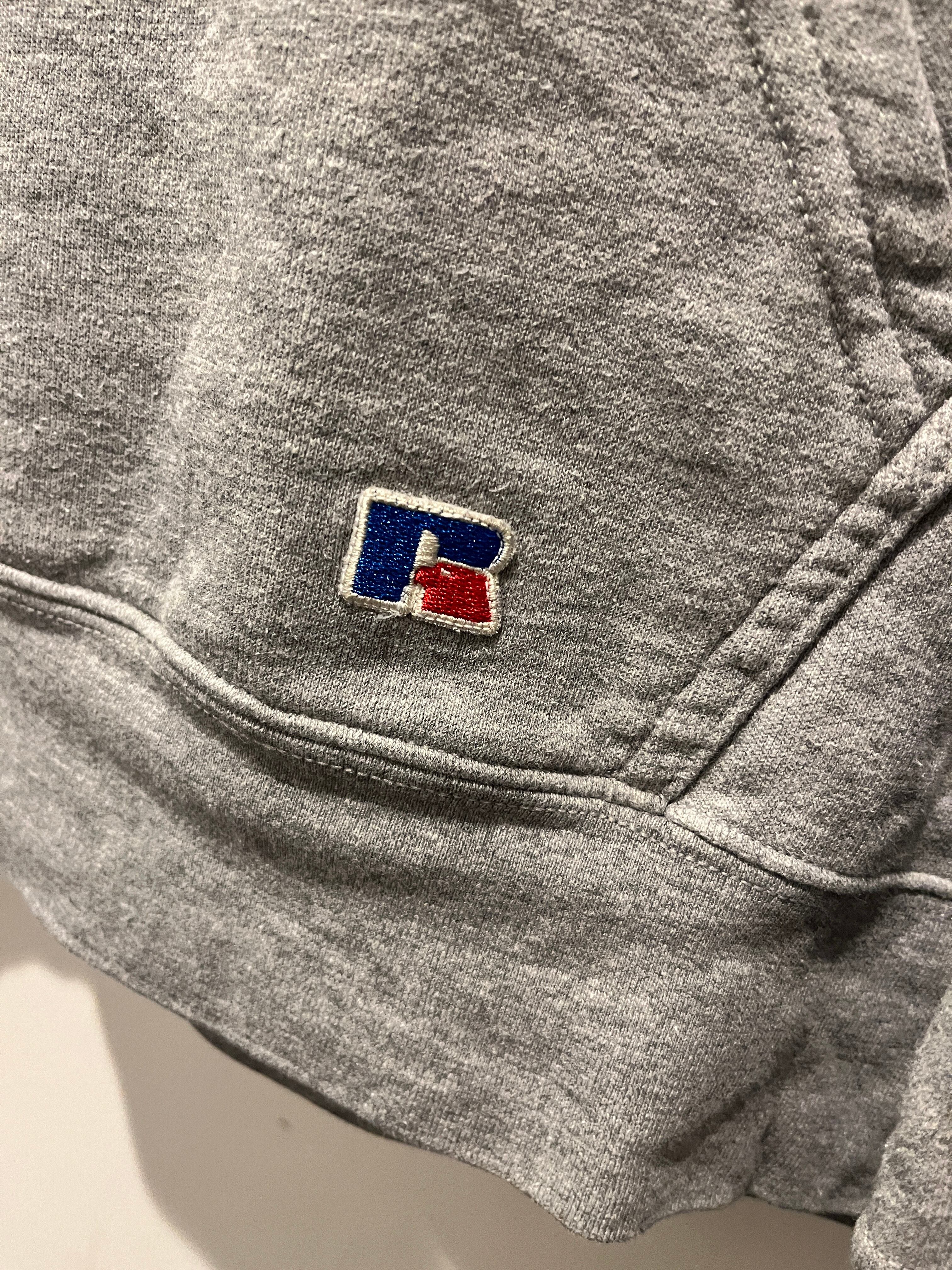 2000年代ラッセルのパーカーです。グレーボディに意外と見ないラッセルのロゴが大きくプリントされた1着です。チャンピオンなどではロゴマークプリント見ますがラッセルでは珍しい感じがしますね。ラッセルらしい前V仕様でコンディションも良くオススメです。