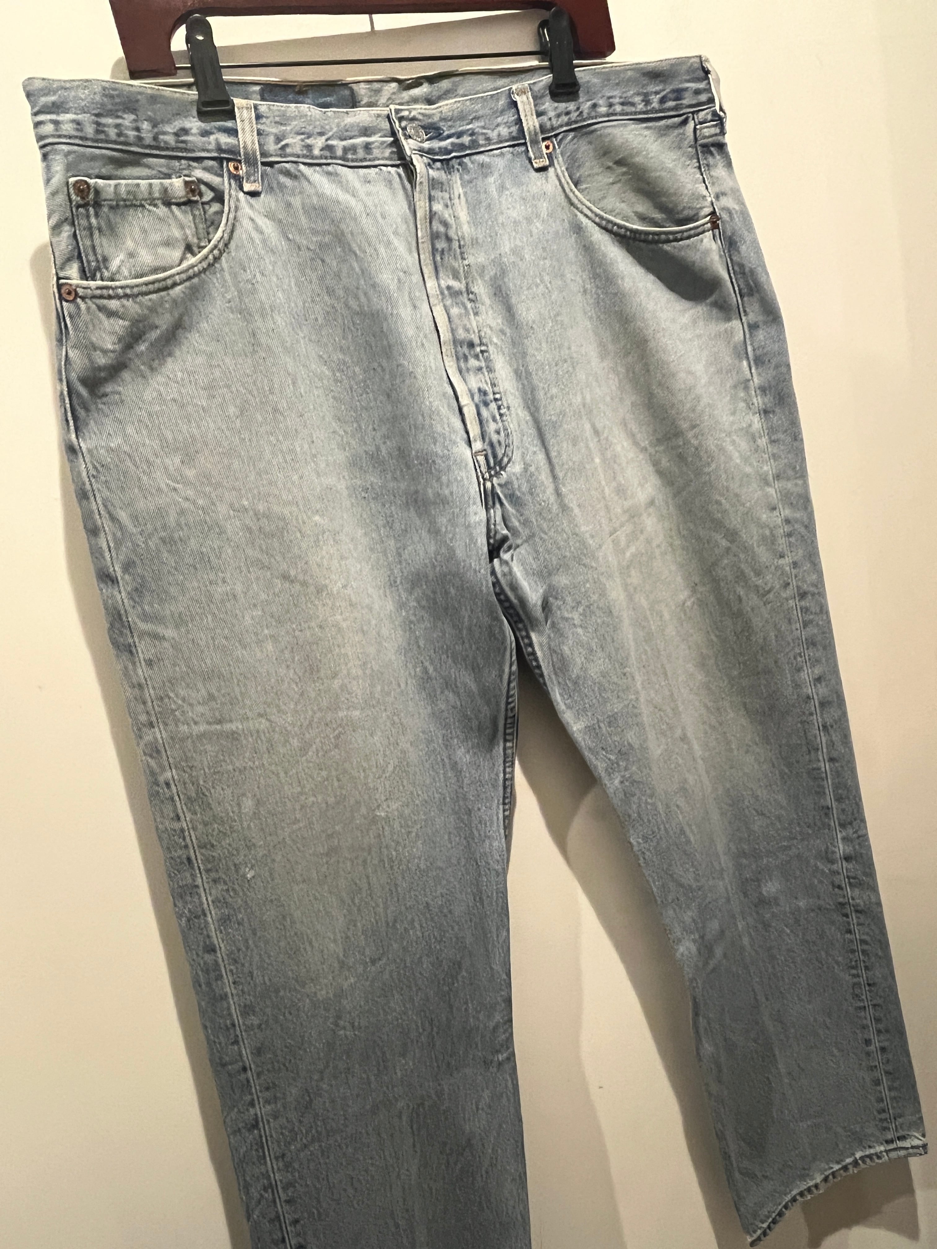 90年代アメリカ製リーバイス501デニムパンツです。1996年9月製造の501で綺麗なブルーのデニムパンツです。501なのでボタンフライ仕様のトップボタン裏は524となります。W38×L30とベルトで絞って履いても、少しルーズなシルエットになりそれも魅力的ですね。アメリカ製の501は少なくなってきているので大きめサイズを探していた方にはオススメな1本です。