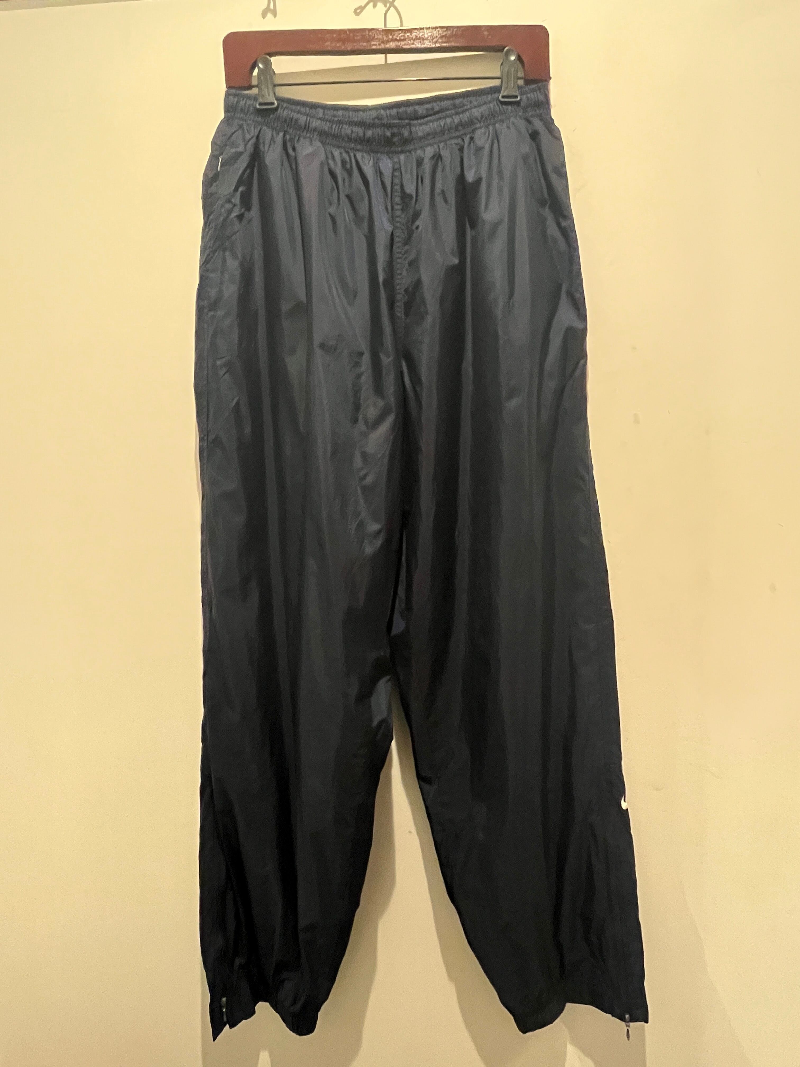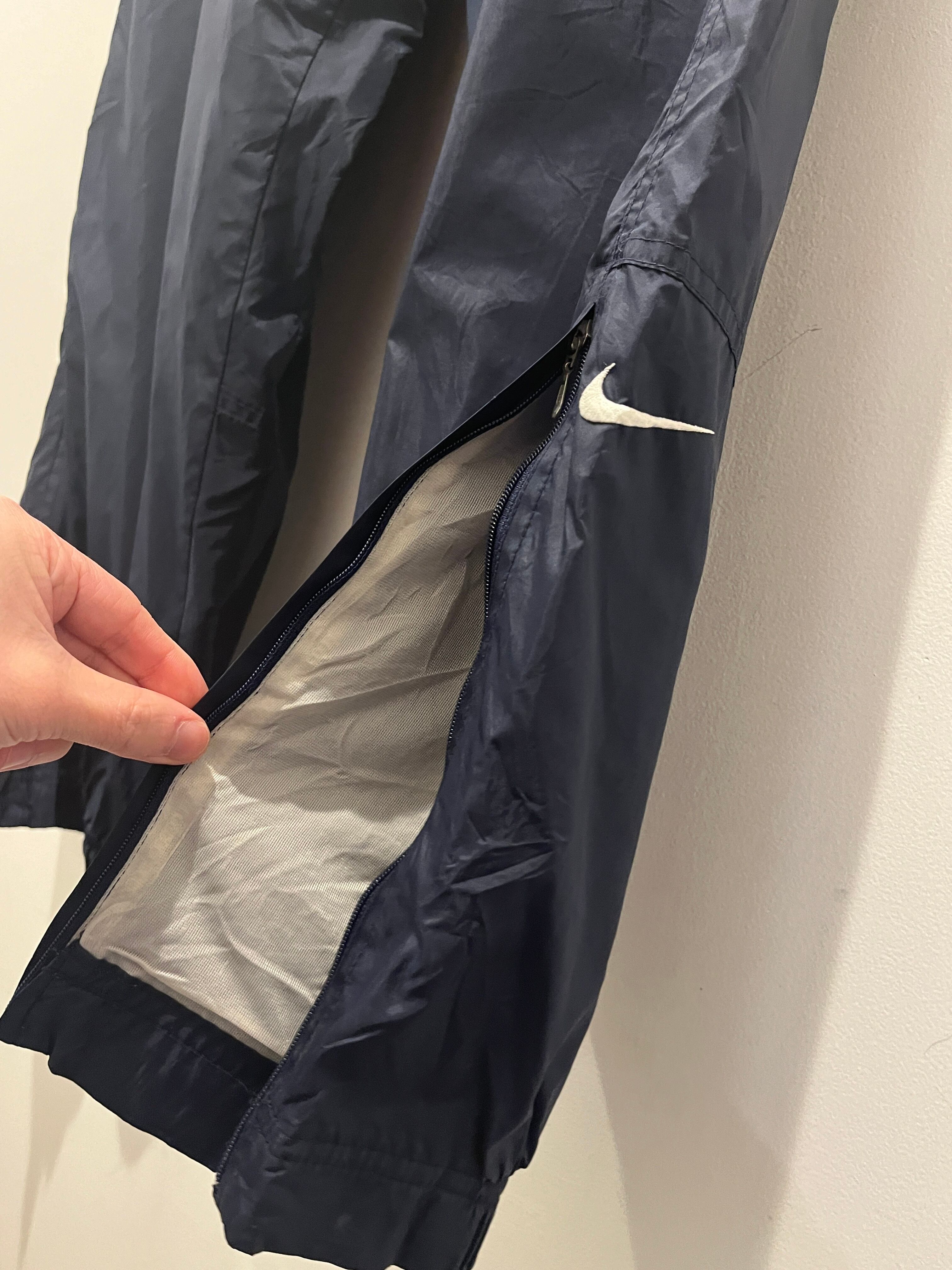 90年代〜2000年代ナイキのナイロンパンツです。ダークネイビーカラーで左裾付近にさりげなくスウォッシュマークがデザインされているのがとても良いですね。ウエストはゴム+紐付きとサイズ調整可能なうえに履きやすくなっています。サイドポケット、後ろポケット、裾にはYKKジッパー付きでコンディションも良くオススメな1本です。