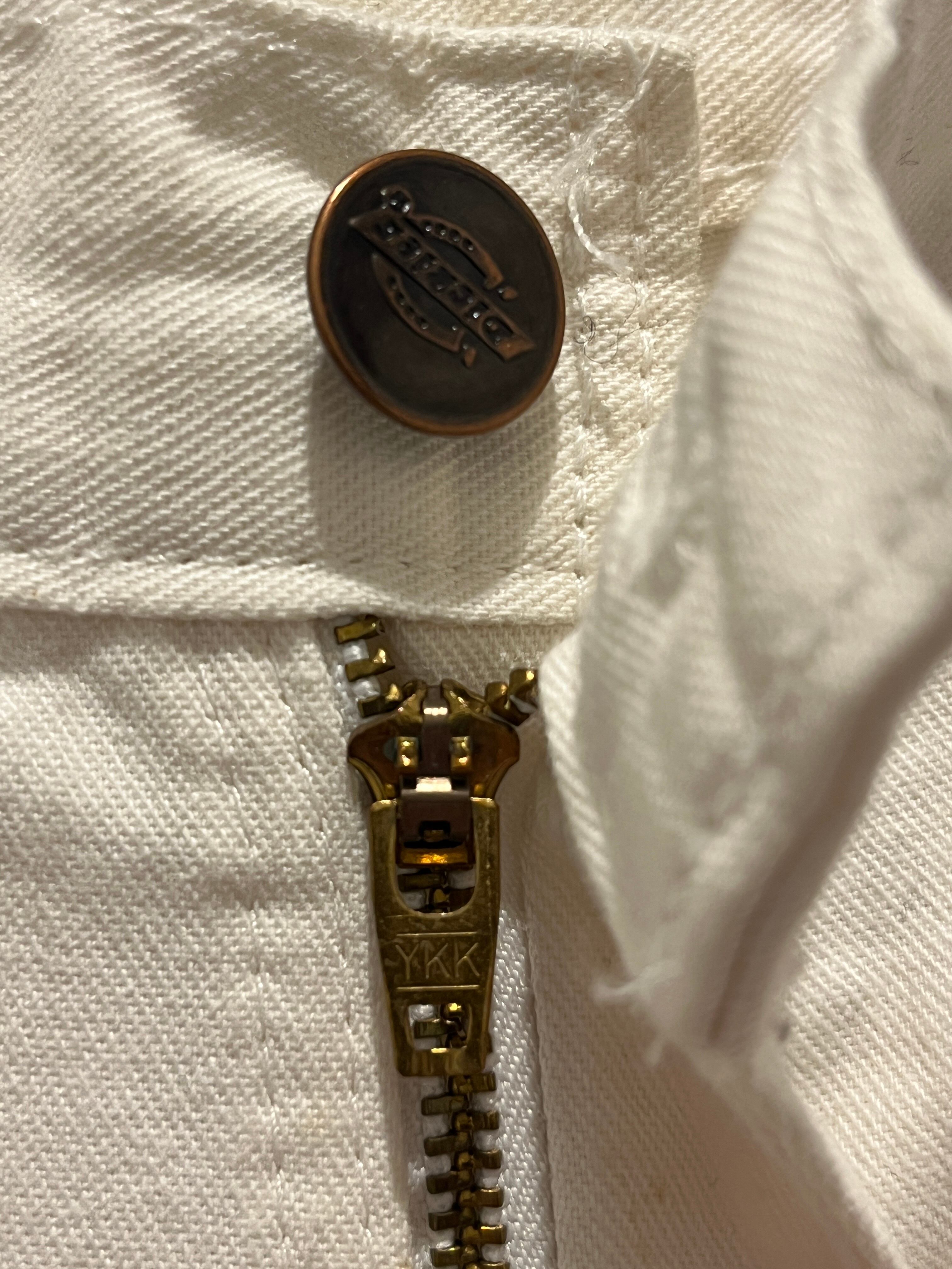 2000年代ディッキーズの白ペインターパンツです。年代としては古く無いですがリアルワークなパンツでペンキ飛びなど雰囲気抜群でアートの要素もある個体です。コットン100%と質感も良く、ベルトで絞って太めに履いて頂くのがオススメです。