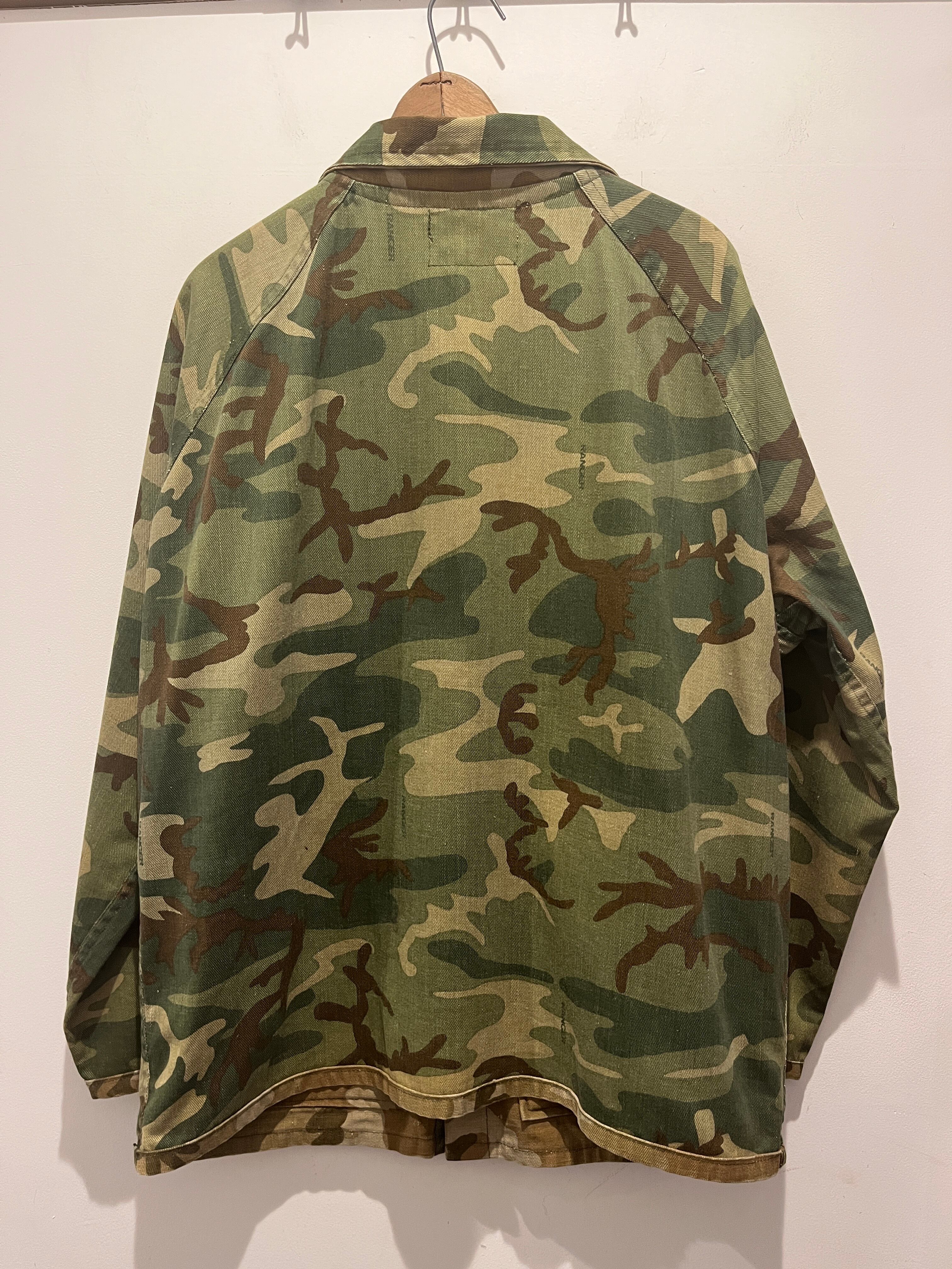 80年代アメリカ製レンジャーのリバーシブルジャケットです。カモフラージュパターンでアルミの回転式ジッパーが付いています。ラグランスリーブで肩が落ち、身幅と着丈が同じ長さのボックスシルエットと着用した時もシルエット良くオススメなアイテムです。