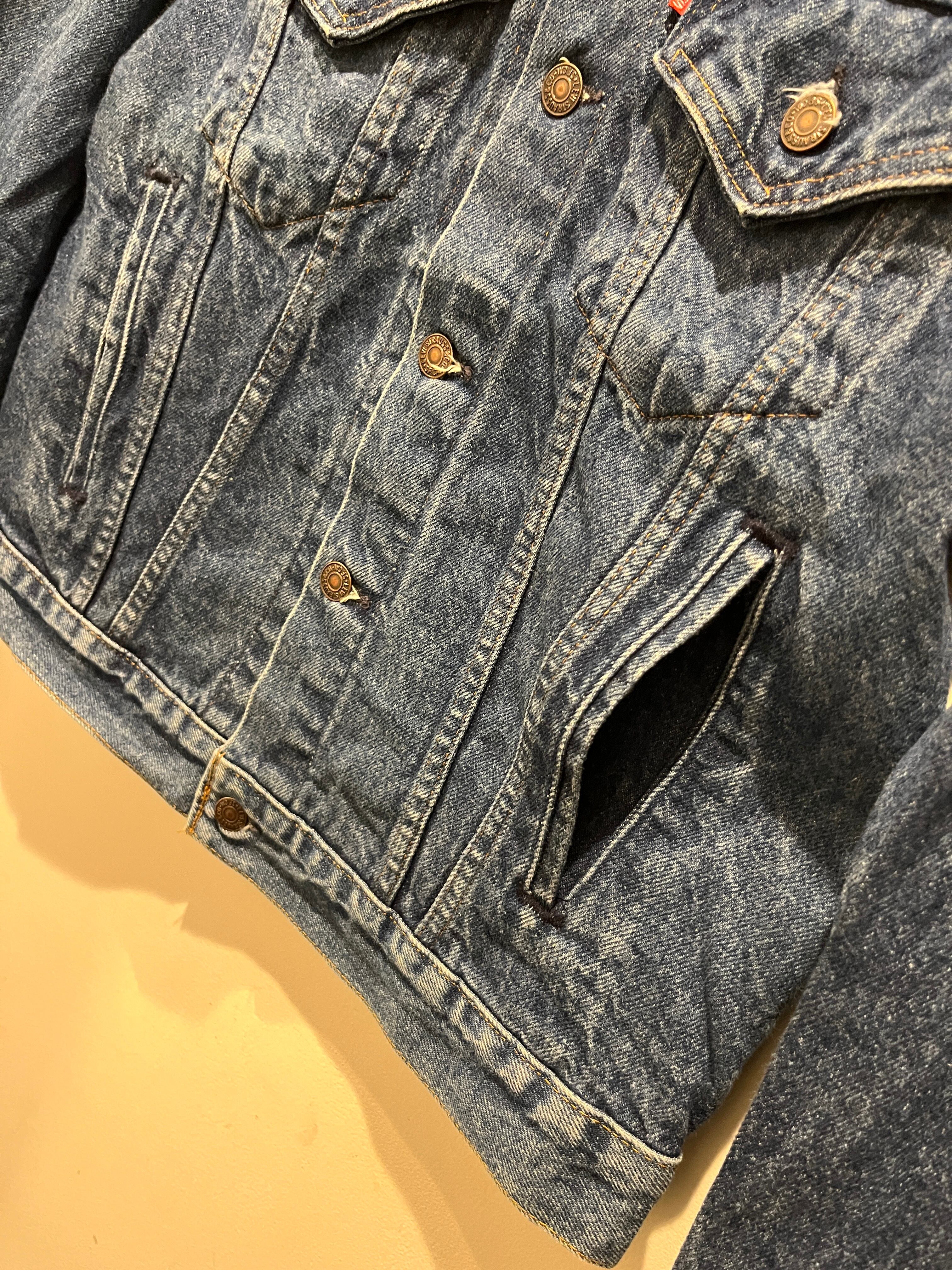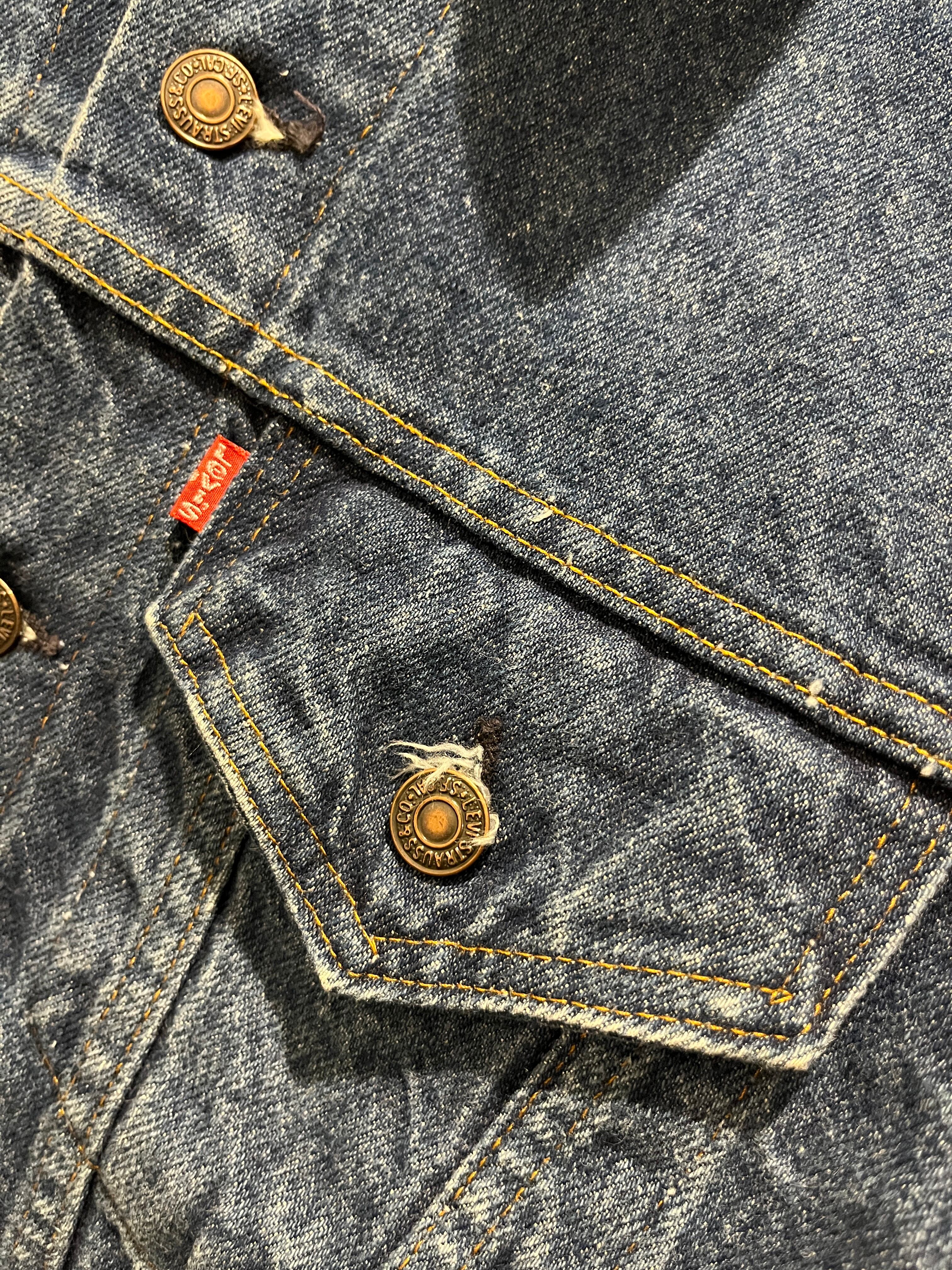80年代アメリカ製リーバイス70506のデニムジャケットです。70505のサイドポケットが付くタイプで普段着用する分にはポケット付きが嬉しいポイントですね。リペアなど無く色もまだ残っているのでガンガン着用して頂けます。サイズが38なのでジャストで着たい方にはオススメな1着です。