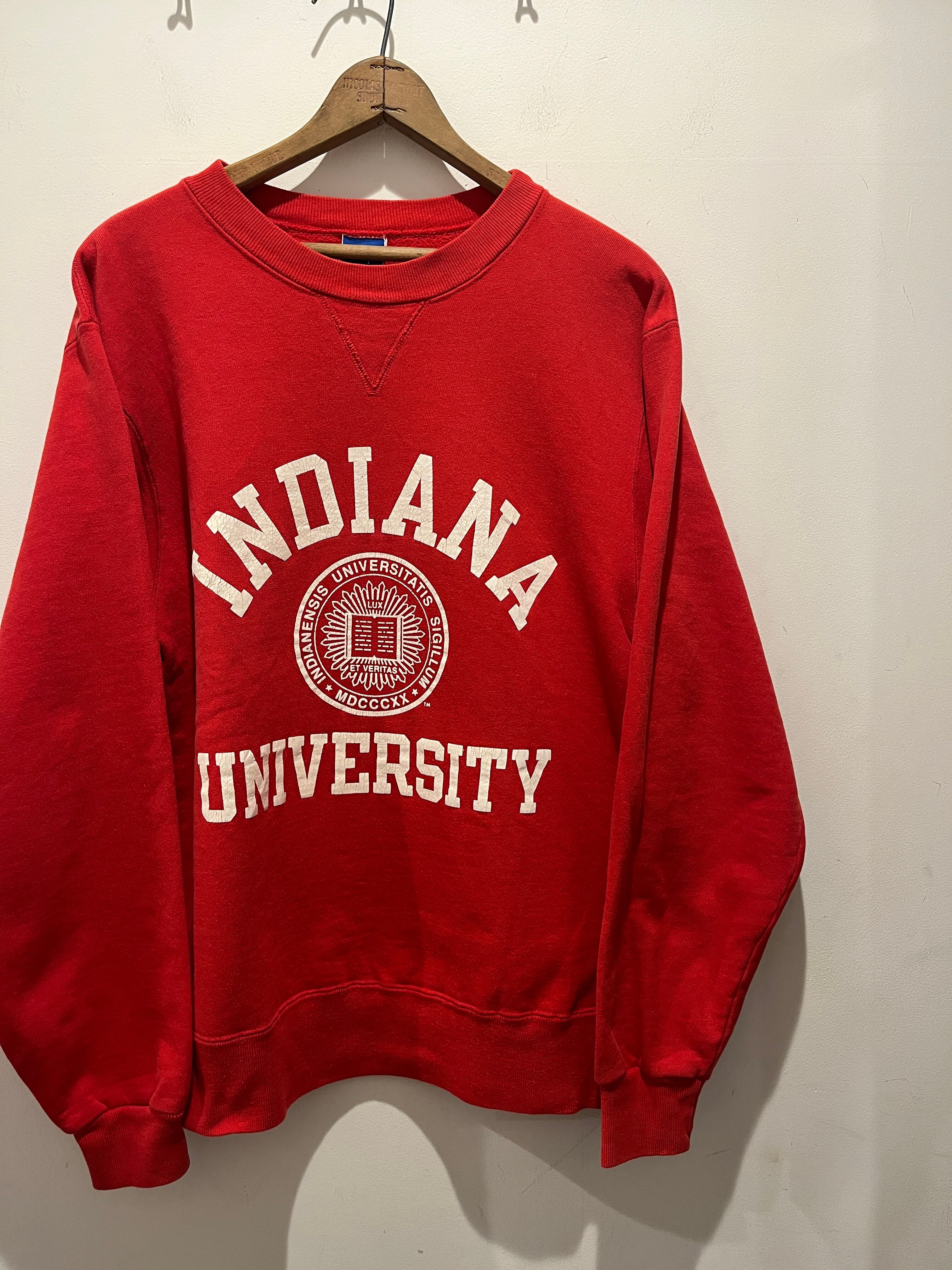 90年代アメリカ製チャンピオンのスウェットです。赤ボディに白ラバーのカレッジ3段プリントが定番ながらとても良いですね。ラッセルの様な前V仕様で95%コットンと生地感もしっかりしています。プリントのヒビも雰囲気良くユニセックスでオススメなスウェットです。
