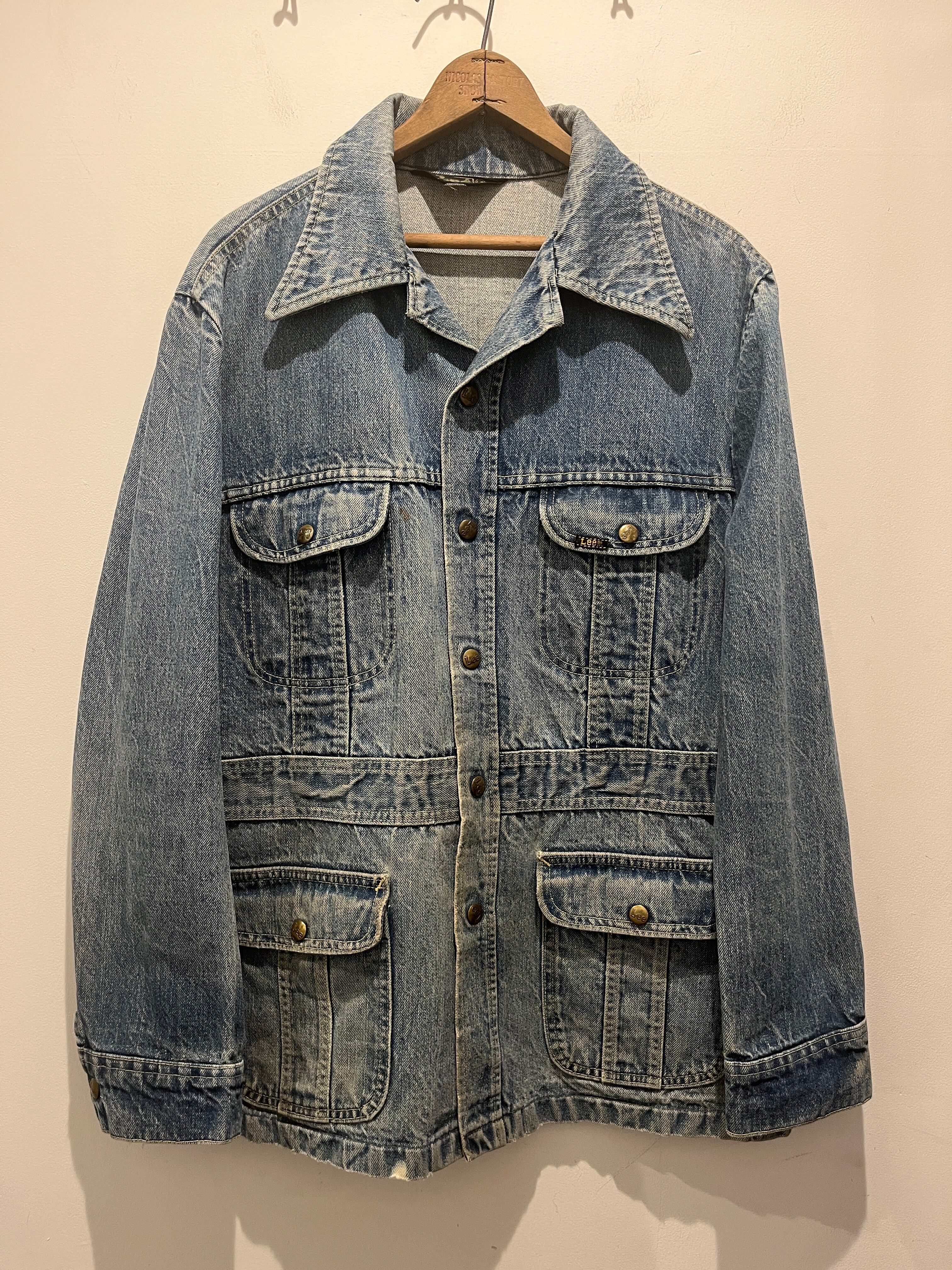 70年代アメリカ製リーのデニムジャケットです。Leeのデニムブッシュジャケットで色は薄くなっているものの、綺麗な縦落ちが魅力的な1着です。オールイエローの綿糸も薄くなっていて雰囲気がとても良いですね。リーバイスのブッシュジャケットよりも玉数少ない印象でお好きな方にはオススメなアイテムです。