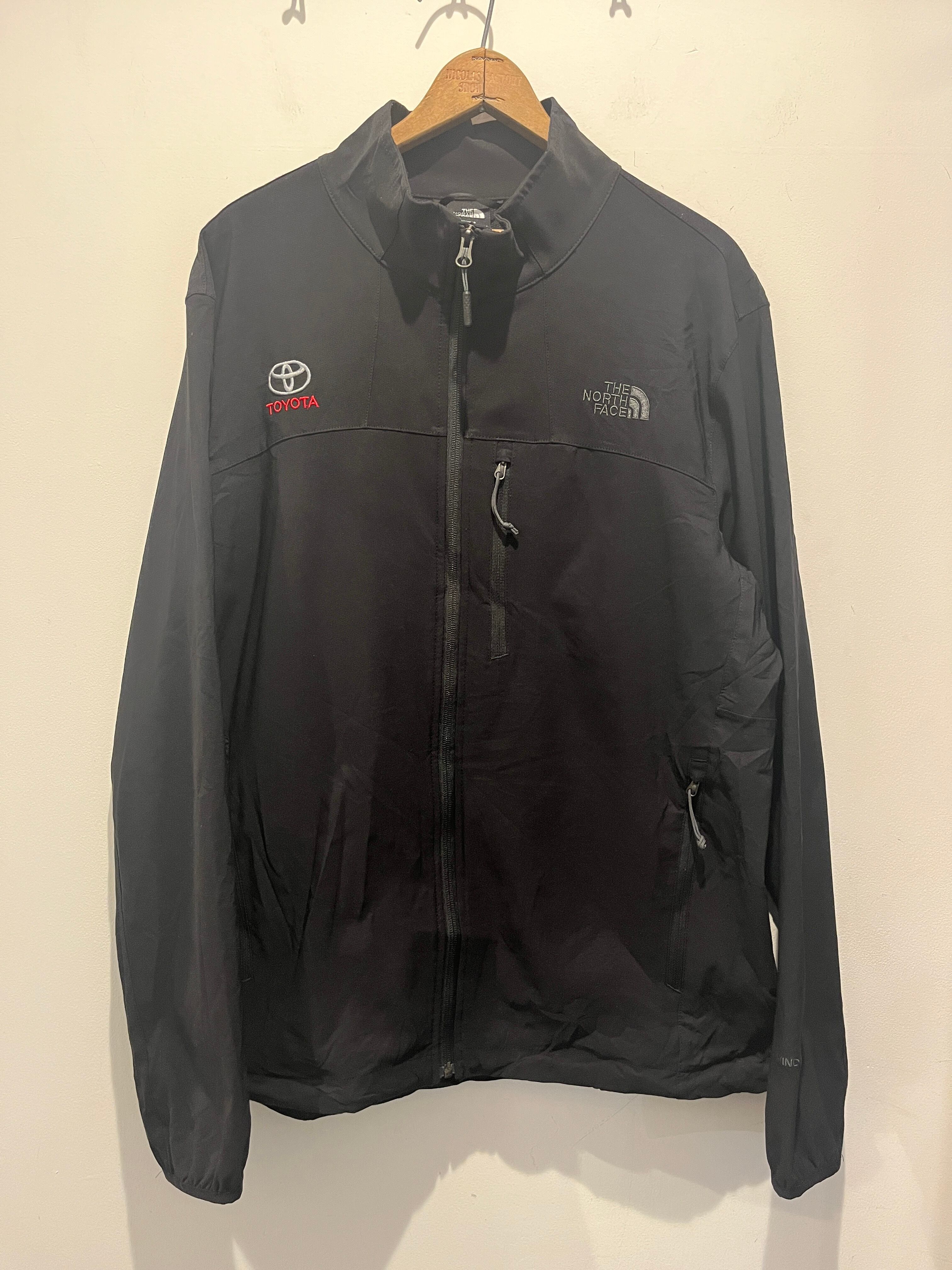 US企画ノースフェイスのシェルジャケットです。アウトドアの定番ブランドノースフェイス。こちらはウインドウォールと防風性にも優れていて、裾に2箇所ドローコードも付いていて絞って着用も可能です。またロゴマークもブラックでTOYOTAの企業刺繍が希少性もありポイントですね。アウトドアブランドならではの機能性もありオススメな1着です。