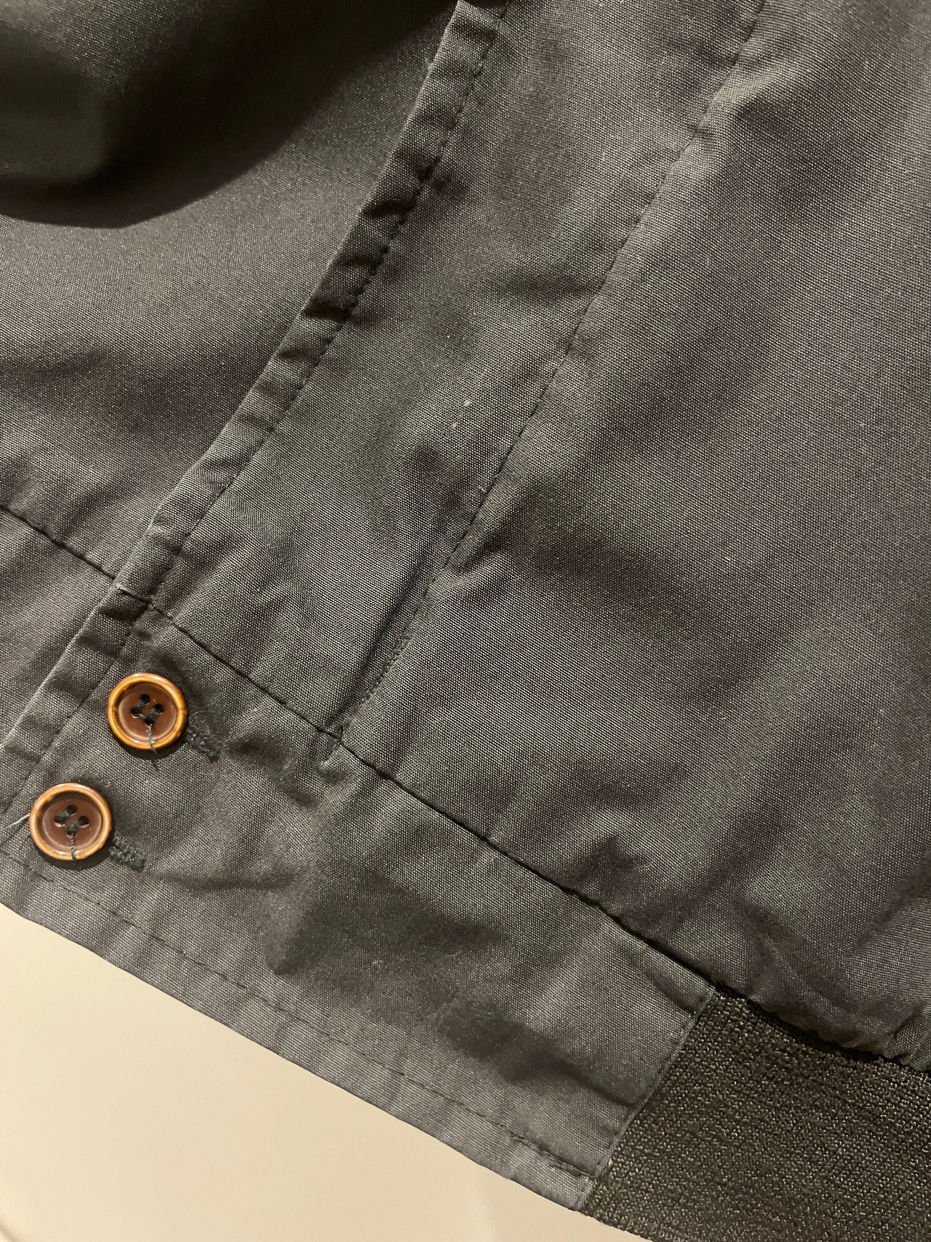 90年代のブラックカップショルダージャケットです。80年代にサンフランシスコのパンクやハードコアシーンで流行したダービージャケット。こちらDERBY社製ではありませんがブラックカラーで大きめなサイズ感が魅力的な1着です。またダービーとは違ってフラップ付きのポケットのディテールがまた良いですね。身幅たっぷりで着丈短めなサイズ感も良くオススメなアイテムです。