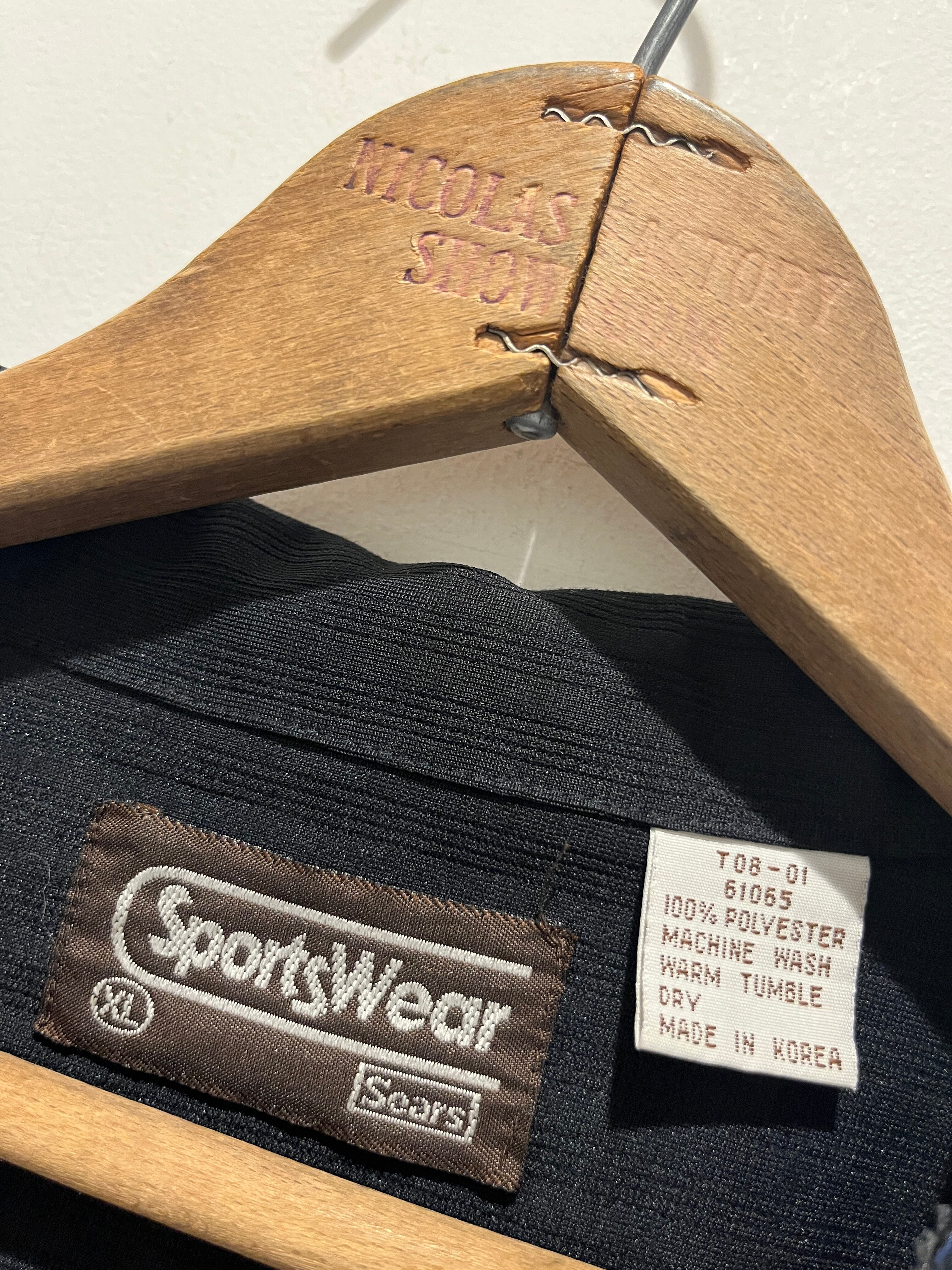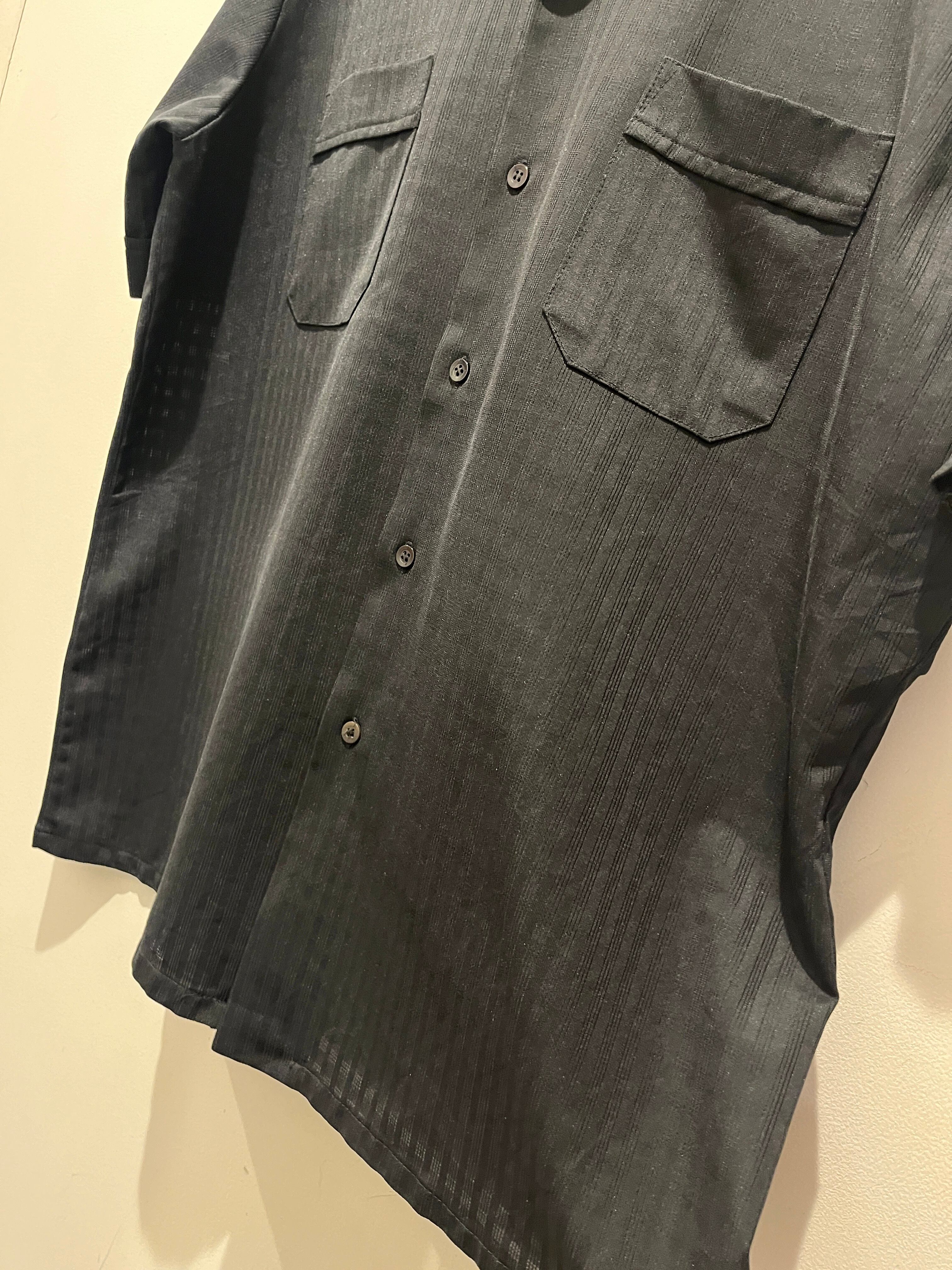 80年代シアーズのオープンカラーシャツです。ブラックカラーのオープンカラーでボックスシルエットとなります。ブラックですがシアー感もあり涼しい1着です。コンディションも良くユニセックスでオススメなシャツです。