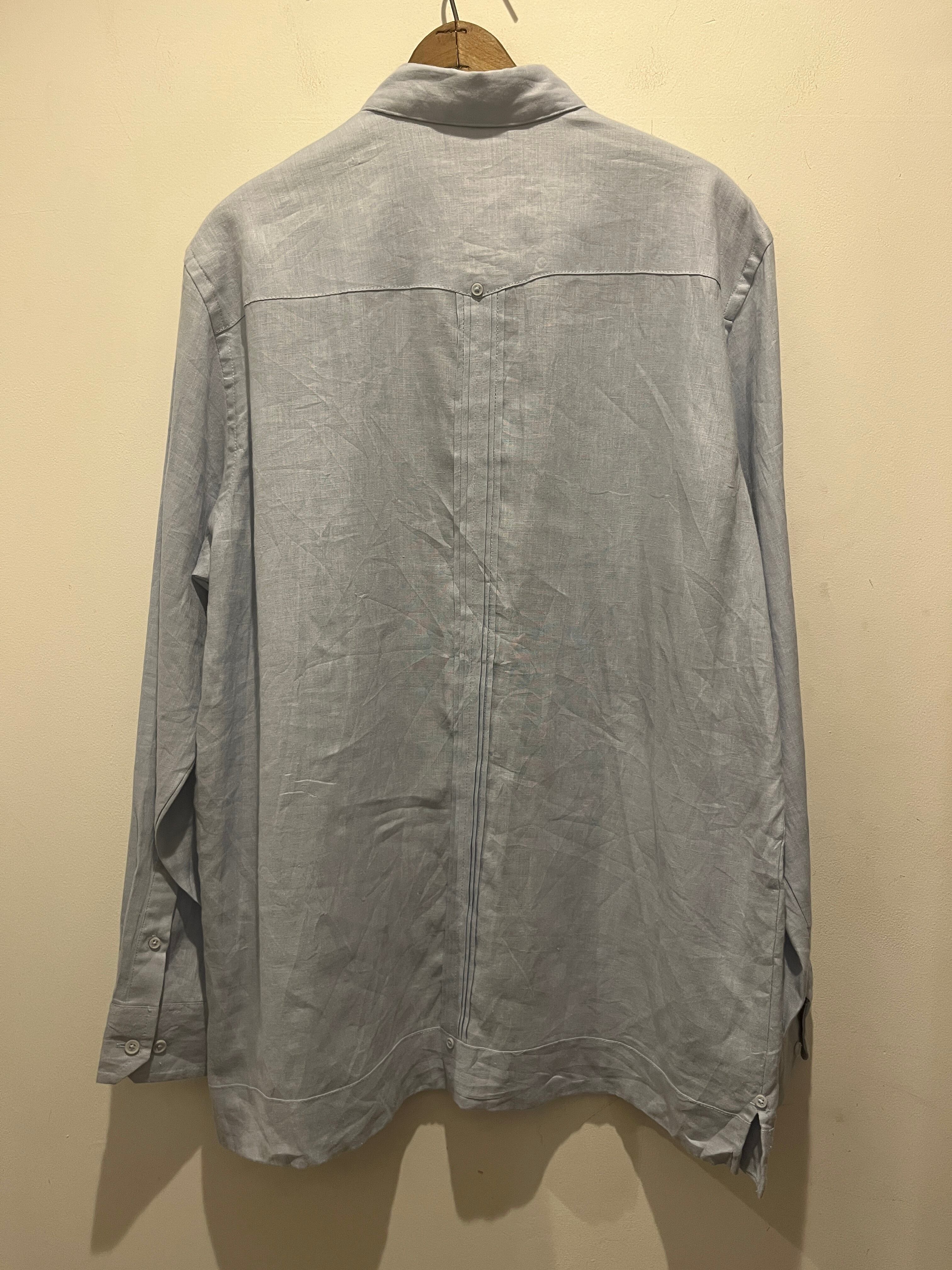 90年代〜2000年代の長袖リネンキューバシャツです。フロントに4つポケットが定番なキューバシャツ。キューバシャツといえば半袖がほとんどですが、こちらは数少ない長袖のキューバシャツとなります。またリネン100%となると更に珍しくプルンプルンな生地感も魅力的な1着ですね。シャンブレーの様な薄いブルーの色味も良くオススメです。