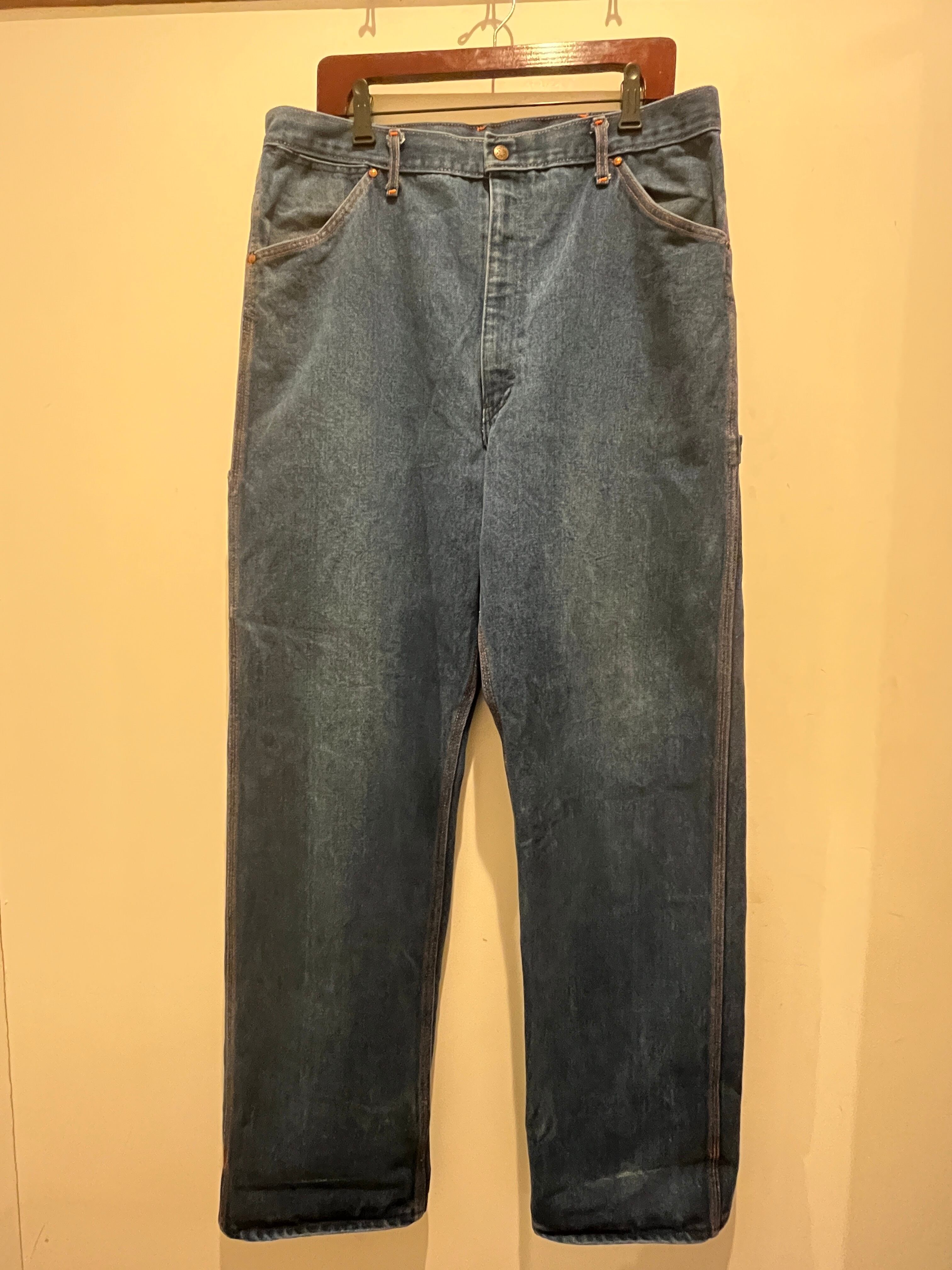 70年代〜80年代アメリカ製ビッグマックのデニムペインターパンツです。年代はそこまで古くはありませんがオンスも高く、色も良いデニムペインターとなります。トップボタンはスナップでジッパーはYKKとなります。実寸サイズも良く、ワークパンツらしく裾を捲って履いても良いですね。太めのストレートシルエットと無骨でオススメなパンツです。