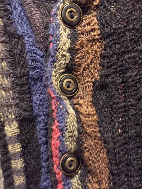 俳優の菅田将暉さんも着用して人気のクージーニット。こちらは珍しい襟付きの物でボタンにもCの刻印がはいります。カラーもブラックベースでメンズ、レディース共に着用しやすいカラーリングですね。クージー風も多く出回っていますがやはり本場クージーは雰囲気も良く最高ですね。